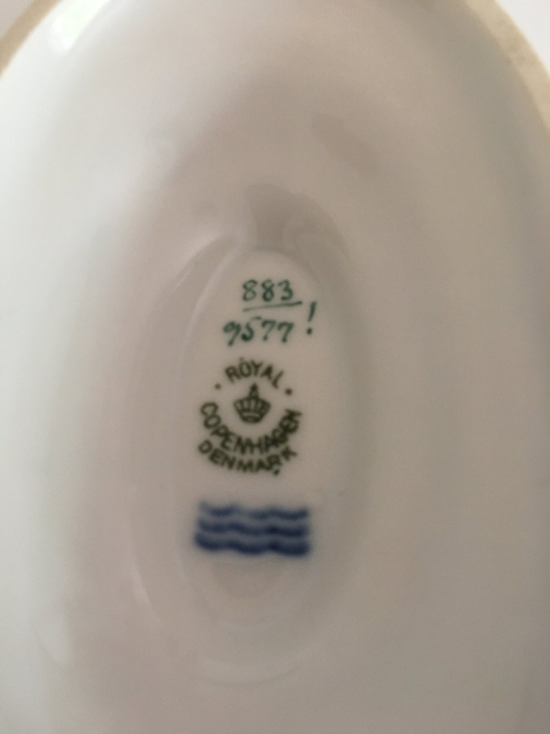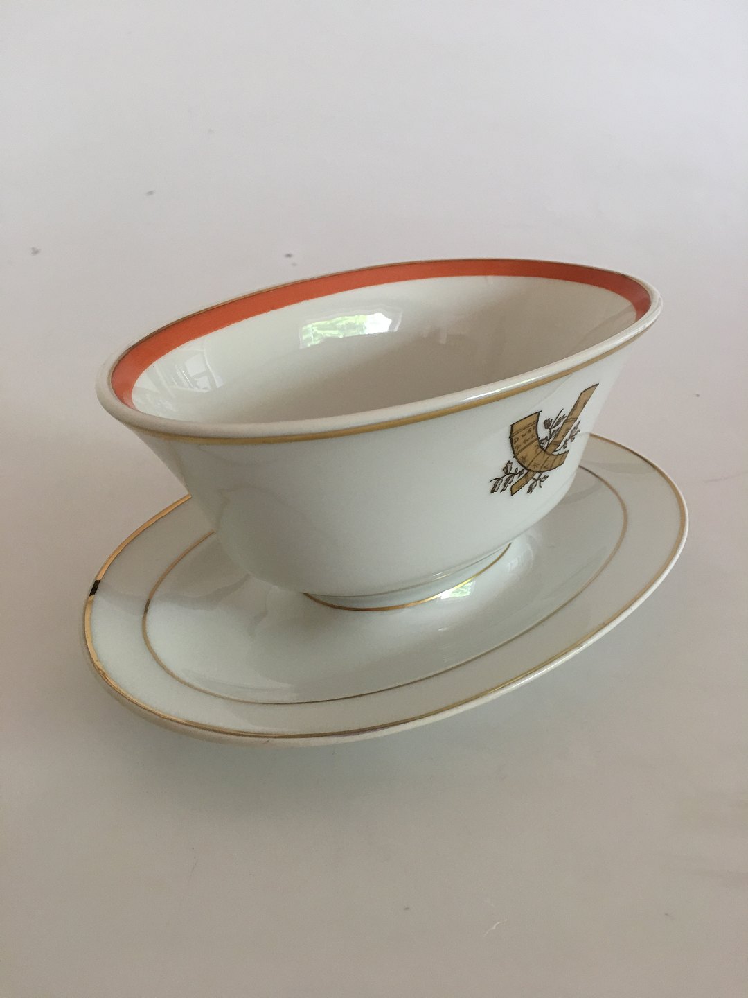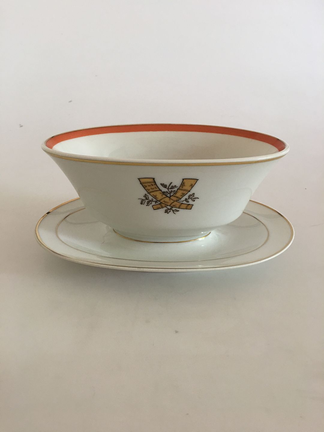 Royal Copenhagen Golden Horns with Orange Band Oval Sauce Bowl No 883/9477. 9.5 cm H. 18 cm dia