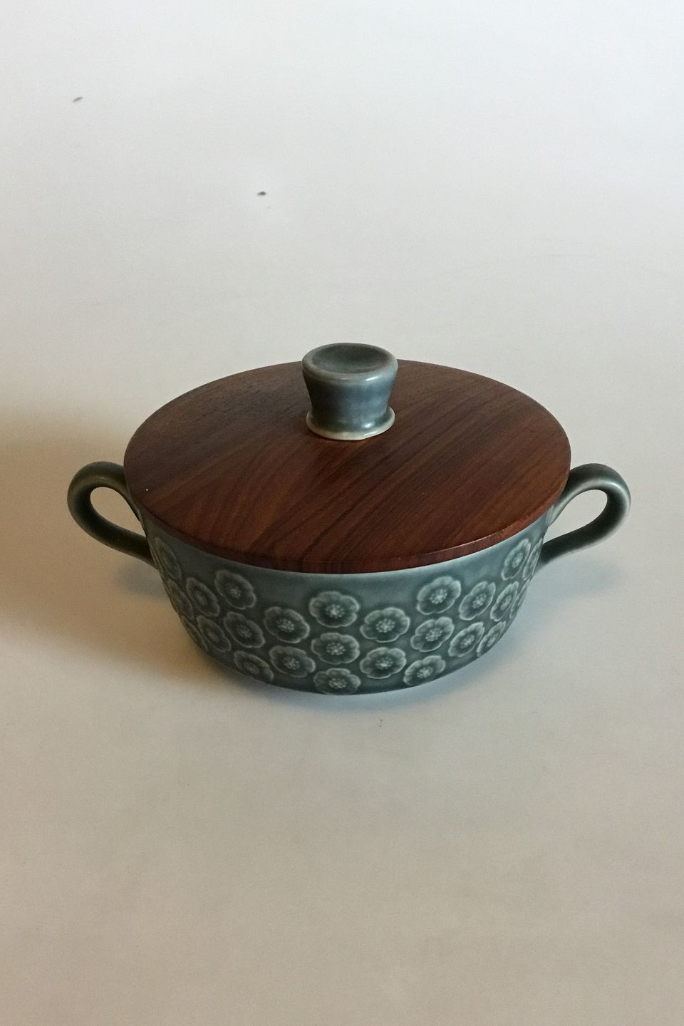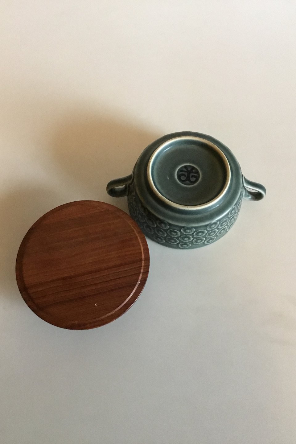 Bing & Grøndahl Green Azur (Kronjyden) Lågskål med hanke. Låg af Teak. Måler 16 cm