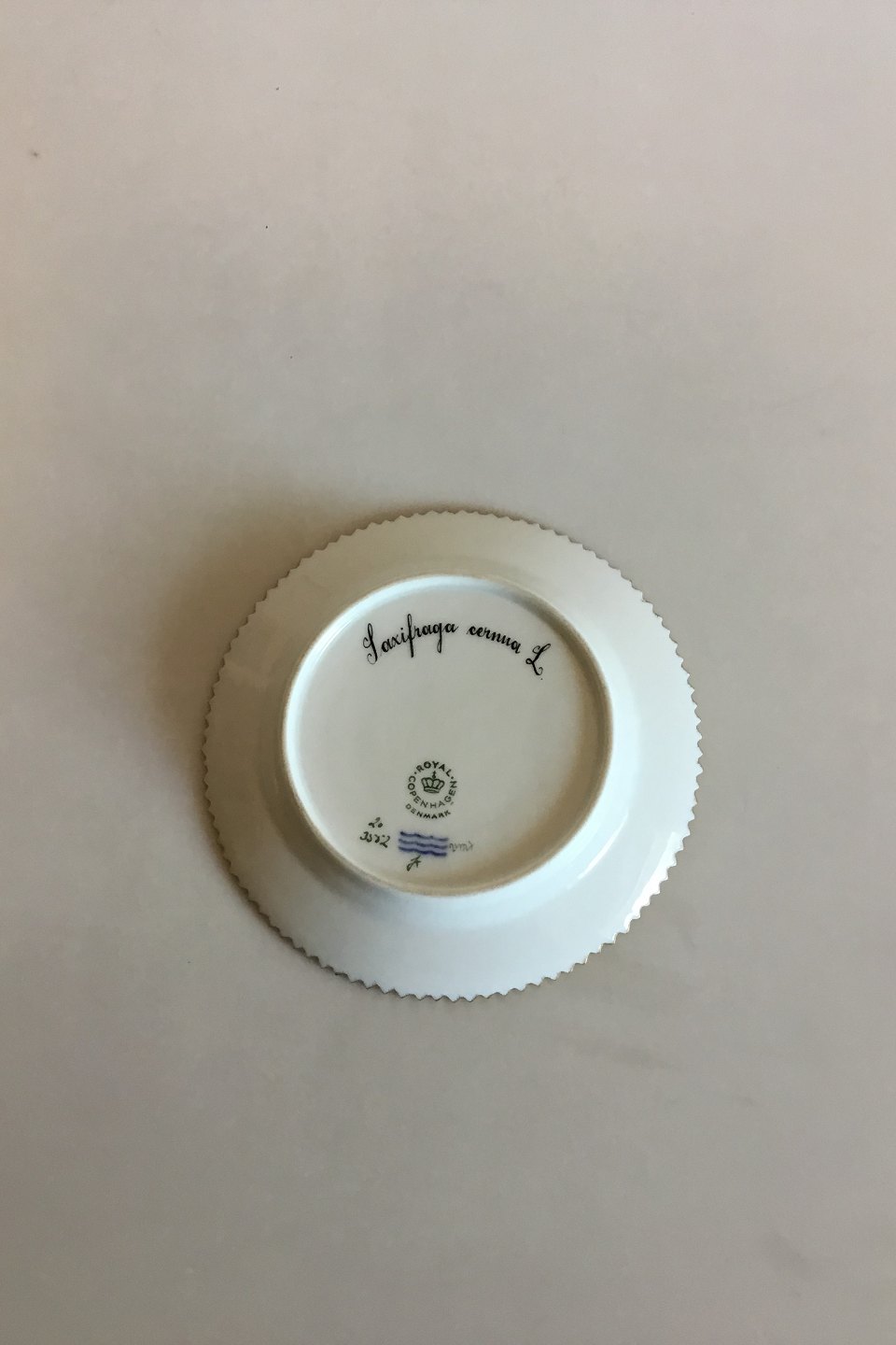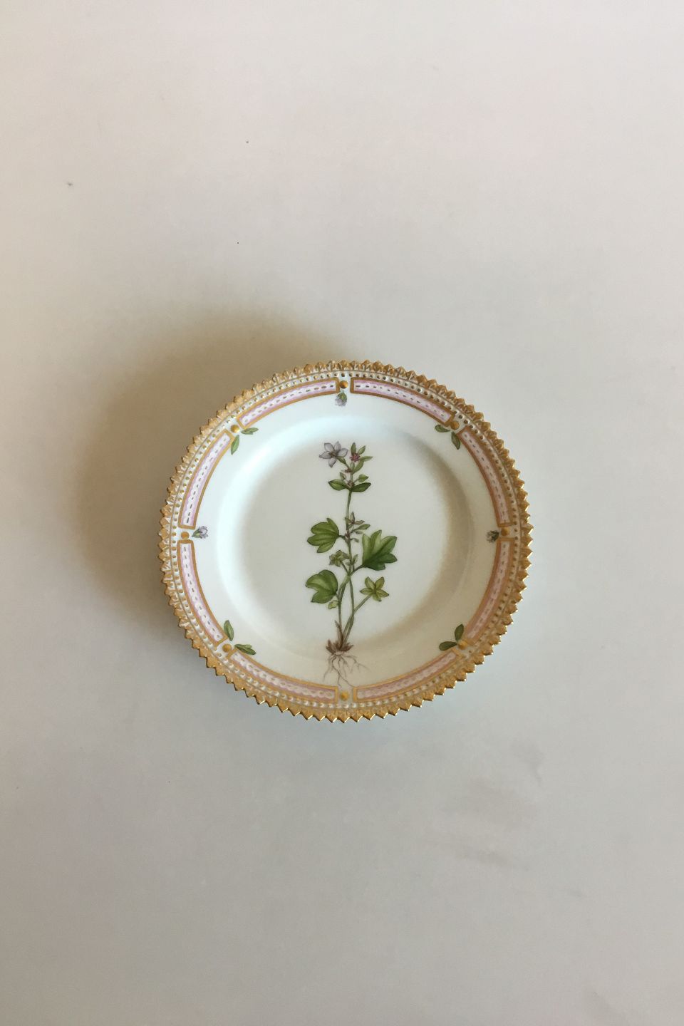 Royal Copenhagen Flora Danica Cake Plate No 20/3552. Measures 14.4 cm / 5 43/64 in. 1st Quality. Latin name: "Saxifraga cernua L."