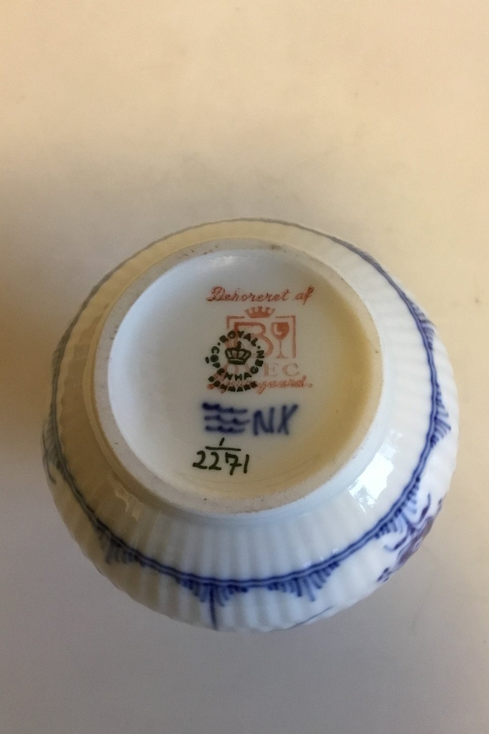 Royal Copenhagen Blue Fluted Plain Vase No 2271. Measures 12.5 cm. With logo from "ACN Missionshotellet"