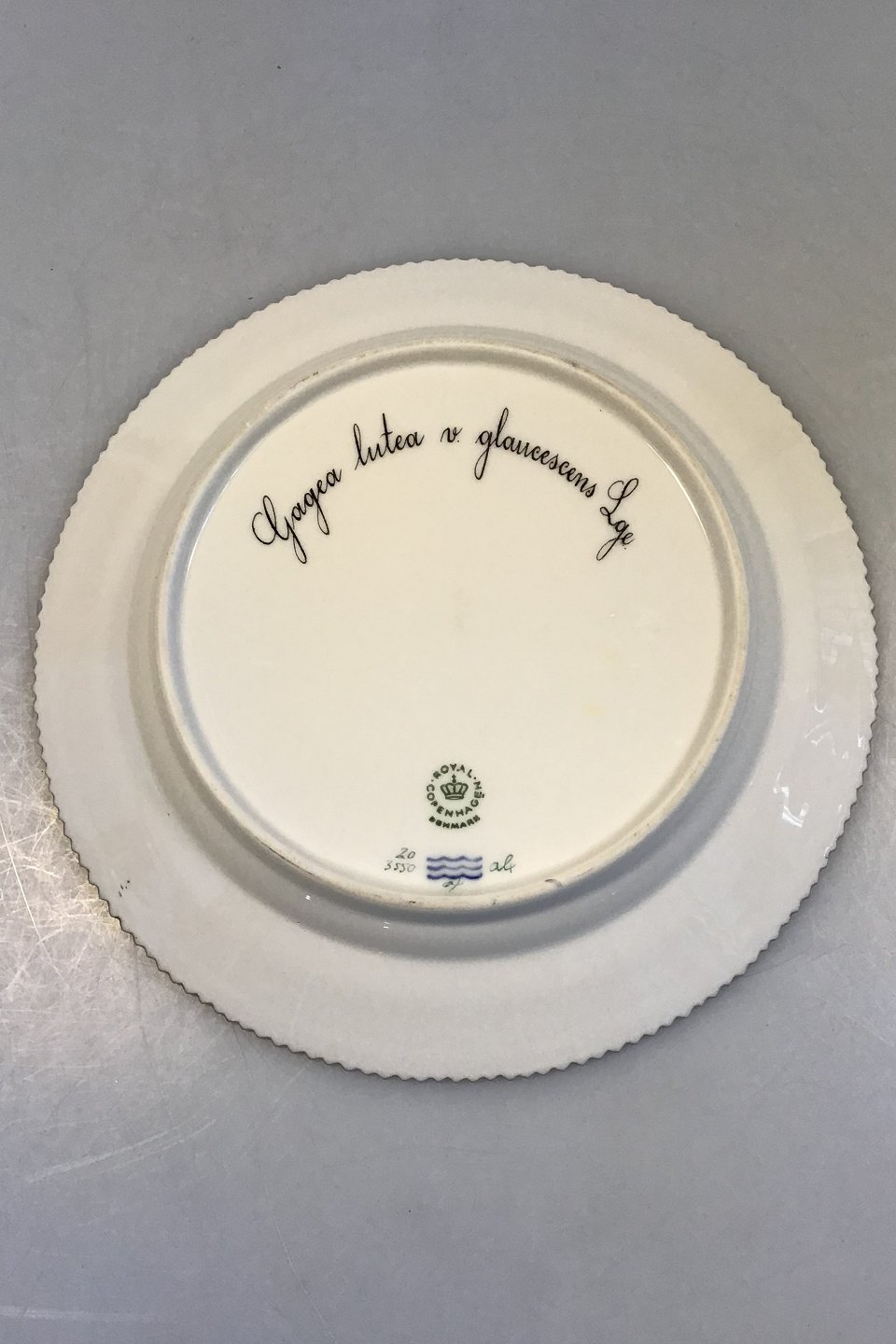 Royal Copenhagen Flora Danica Lunch Plate No 20/3550. Measures 22 cm / 8 21/32 in. 1st Quality. Latin name: "Gagea lutea glaucescens Lge"(Yellow star-of-Bethlehem)