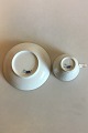 Royal Copenhagen White Curved with serrated Gold edge(Pattern 387/ Josephine) Coffee Cup and Saucer No 1549. Measures Cup: 5.5 cm / 2 11/64 in. x 7.4 cm / 2 29/32 in. dia. Saucer: 13.5 cm / 5 5/16 in. Gold at the bottom of the saucer is slightly worn