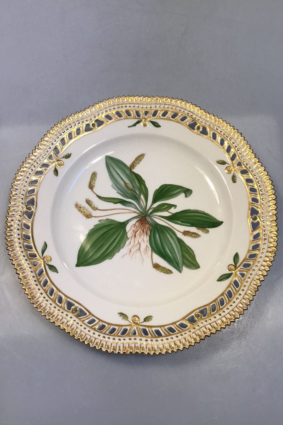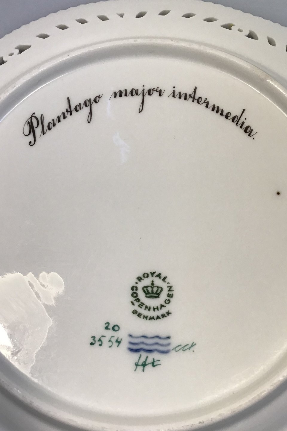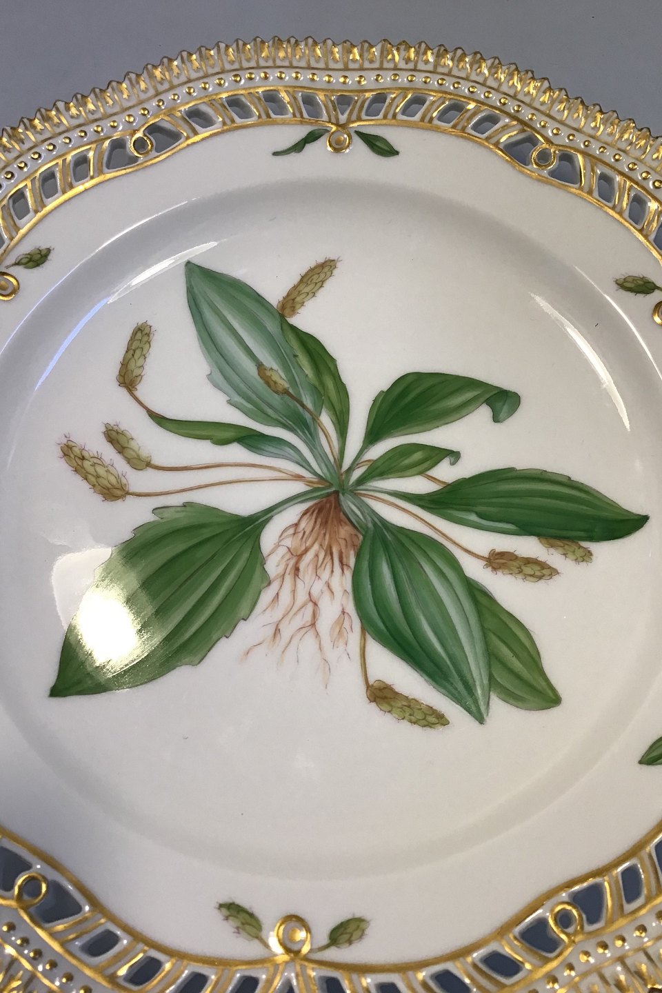 Royal Copenhagen Flora Danica Luncheon Plate No 20/3554 with Pierced Border. Latin Name: Plantago major intermedia( Greater Plantain). Measures 23 cm (9 1/16"). 1st Quality.