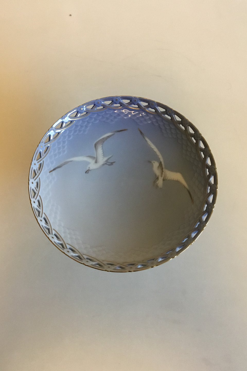 Bing & Grøndahl Måge med Guld Kageopsats med gennembrudt kant. Måler 12 cm x 22 cm dia.