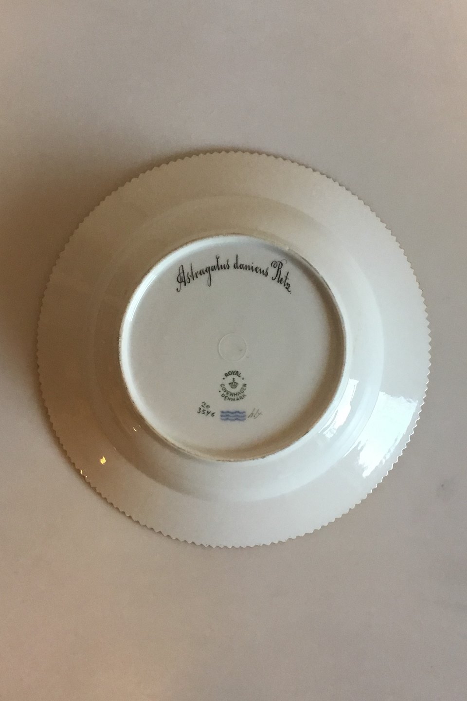 Royal Copenhagen Flora Danica Deep Plate No 20/3546. Latin name: Astragalus danicus Retz. Measures 22.3 cm / 8 25/32 in.