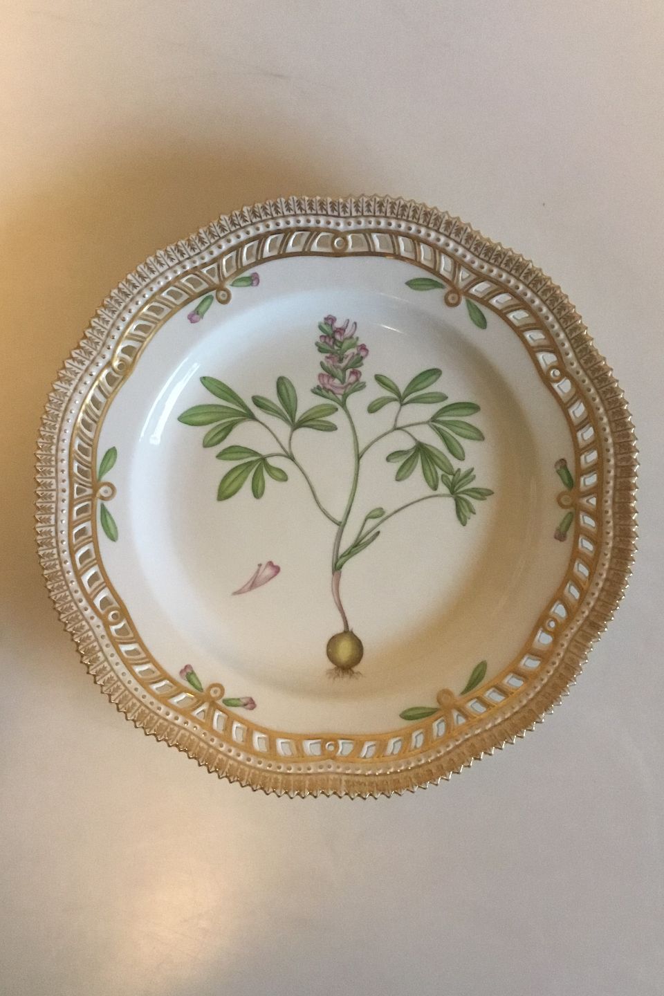Royal Copenhagen Flora Danica Plate with pierced border No 20/3553. Latin name: Fumaria Halleri Willd. Måler 25.5 cm / 10 3/64 in.