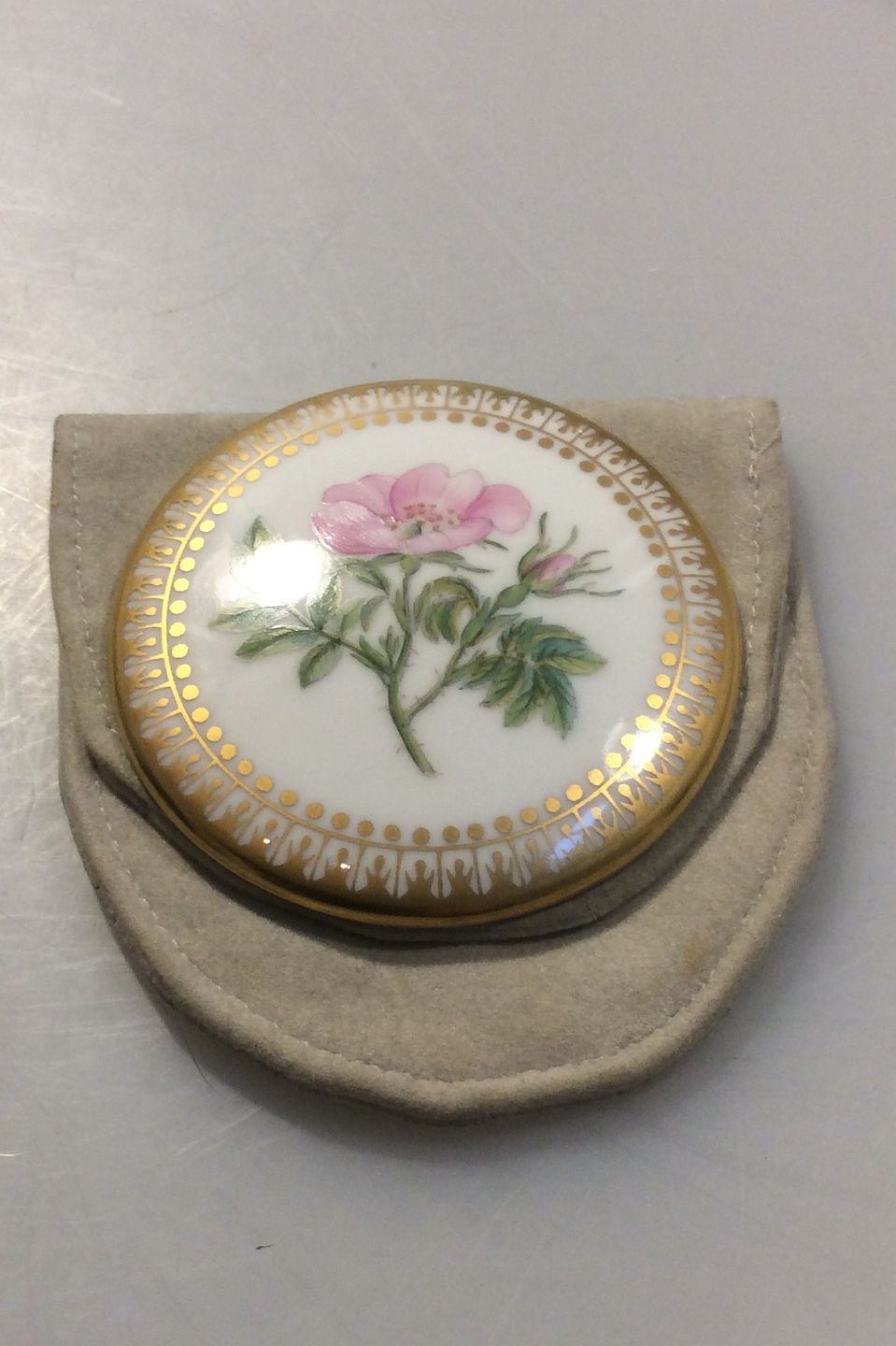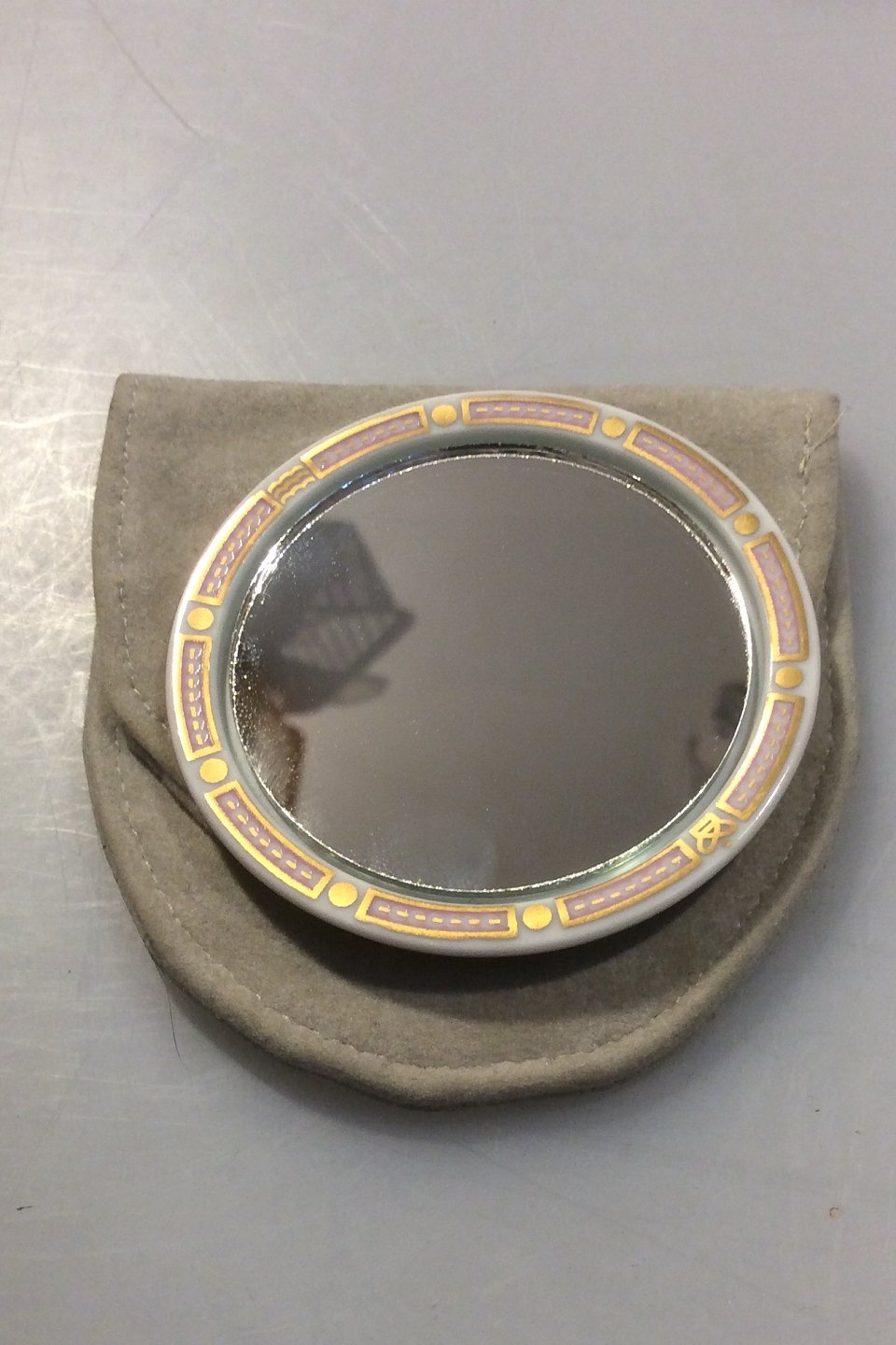 Royal Copenhagen Flora Danica Little Pocket Mirror. 6.5 cm dia (2 9/16"). Comes in a little grey suede container.