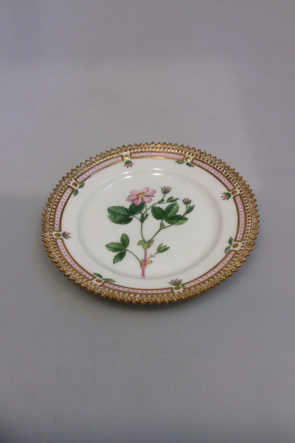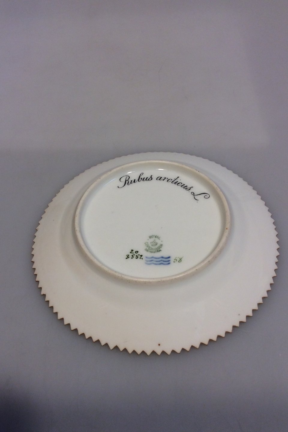Royal Copenhagen Flora Danica Cake Plate No 20/3552. Latin Name: Rubus arcticus L. Measures 14.3 cm / 5 5/8 in.