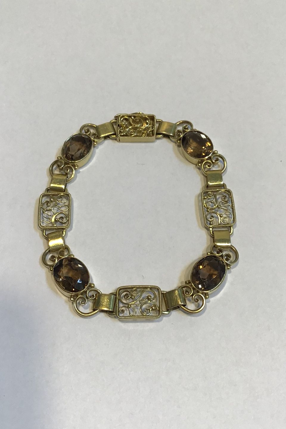 Just Andersen 14K Guld Armlænke med Røgfarvet Topas Måler L 18.5 cm Vægt 17.2 gr.