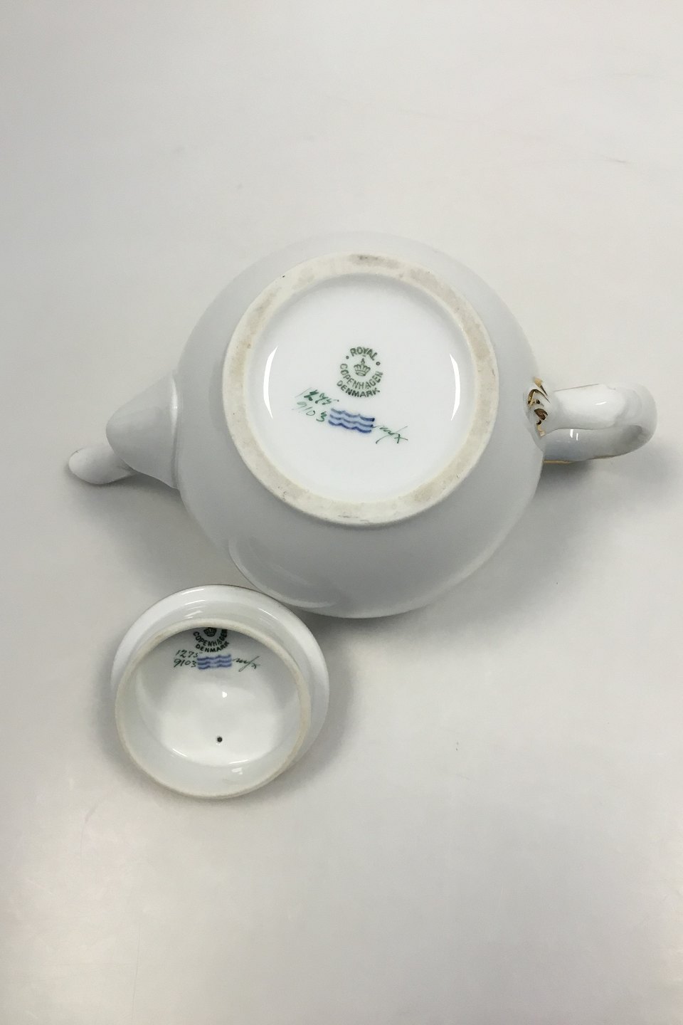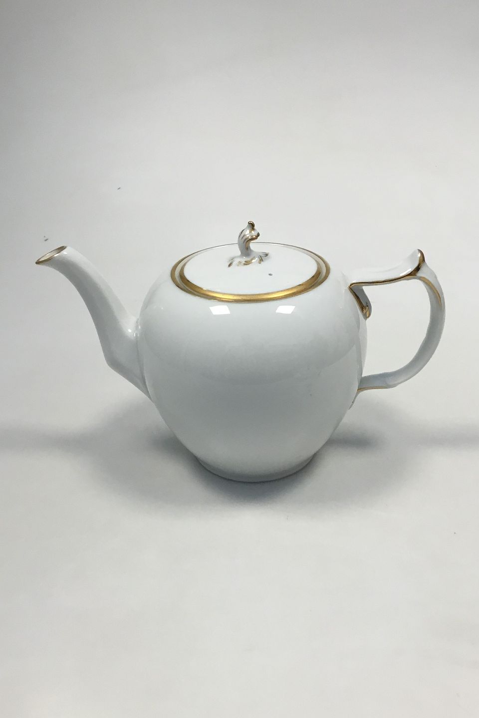 Royal Copenhagen Hvid procelæn med guldkant Thekande No 1275/9103. Måler 24 cm