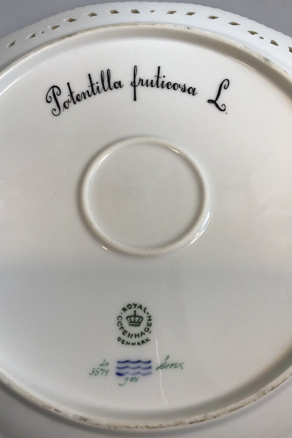 Royal Copenhagen Flora Danica Charger plate with pierced border No 20/3574. Measures 28 cm / 11 1/32 in. Latin name: "Potentilla fruticosa L."
