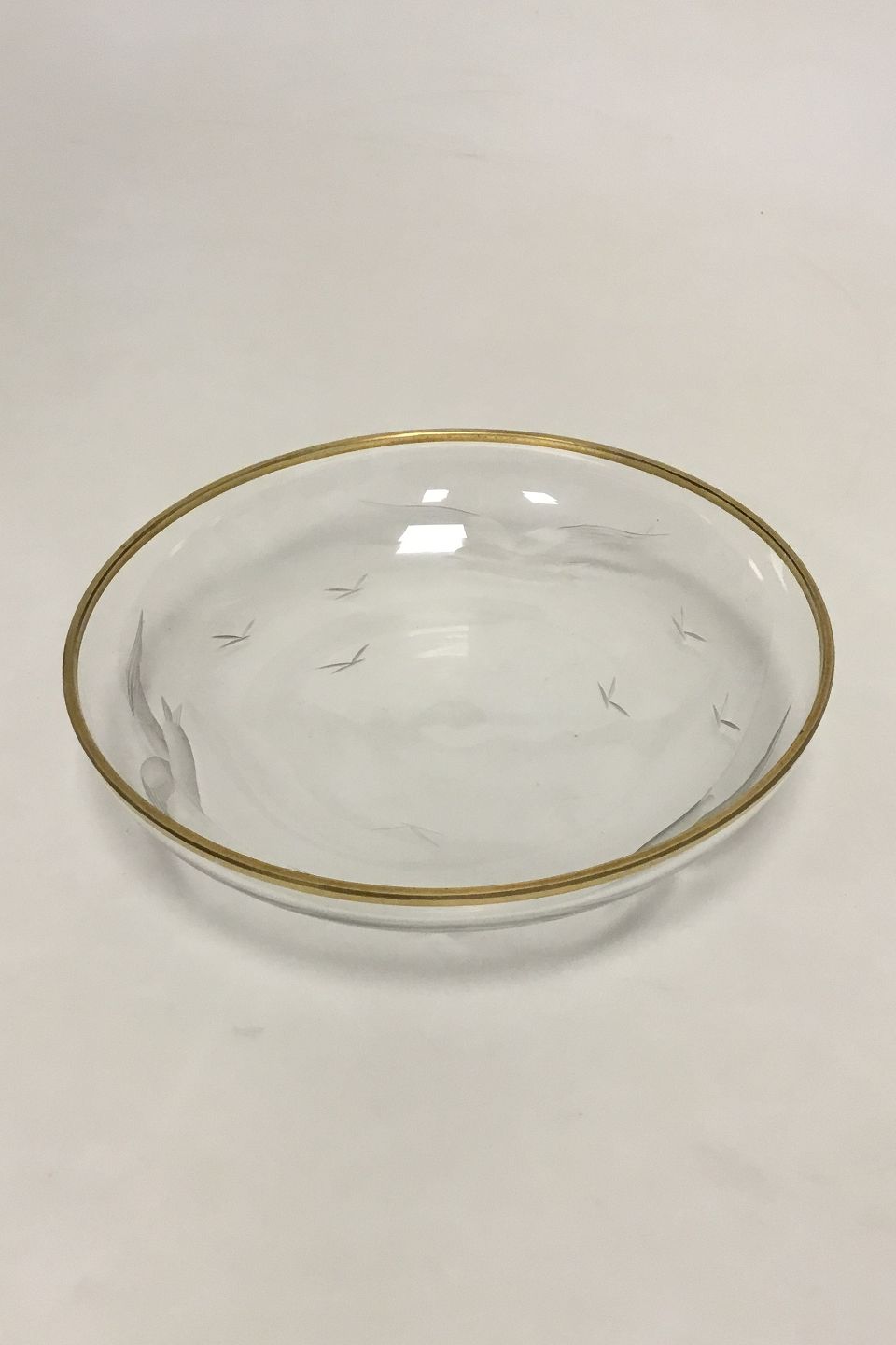 Lyngby Måge glasassiet med slibning og guldkant. Måler 15,5 cm dia. Let slitage