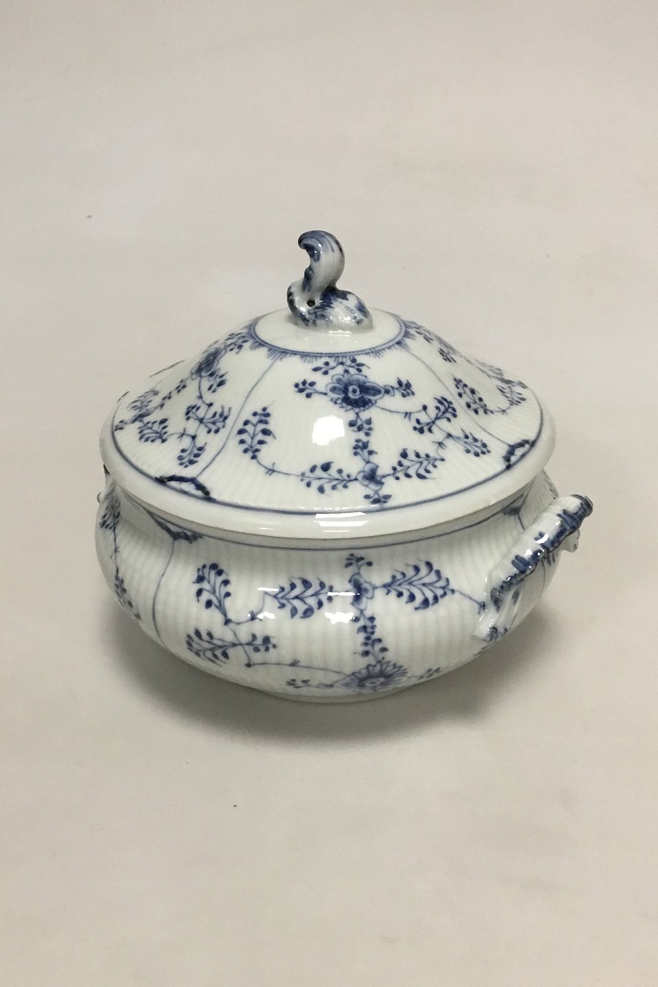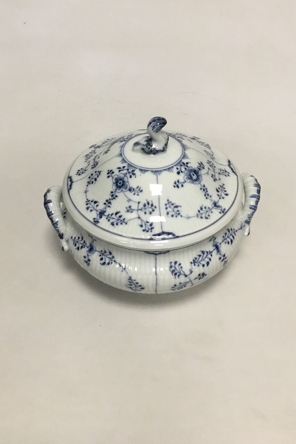 Royal Copenhagen Antik Musselmalet Riflet terrin. Afslag på kanten af låg. Måler 15 cm