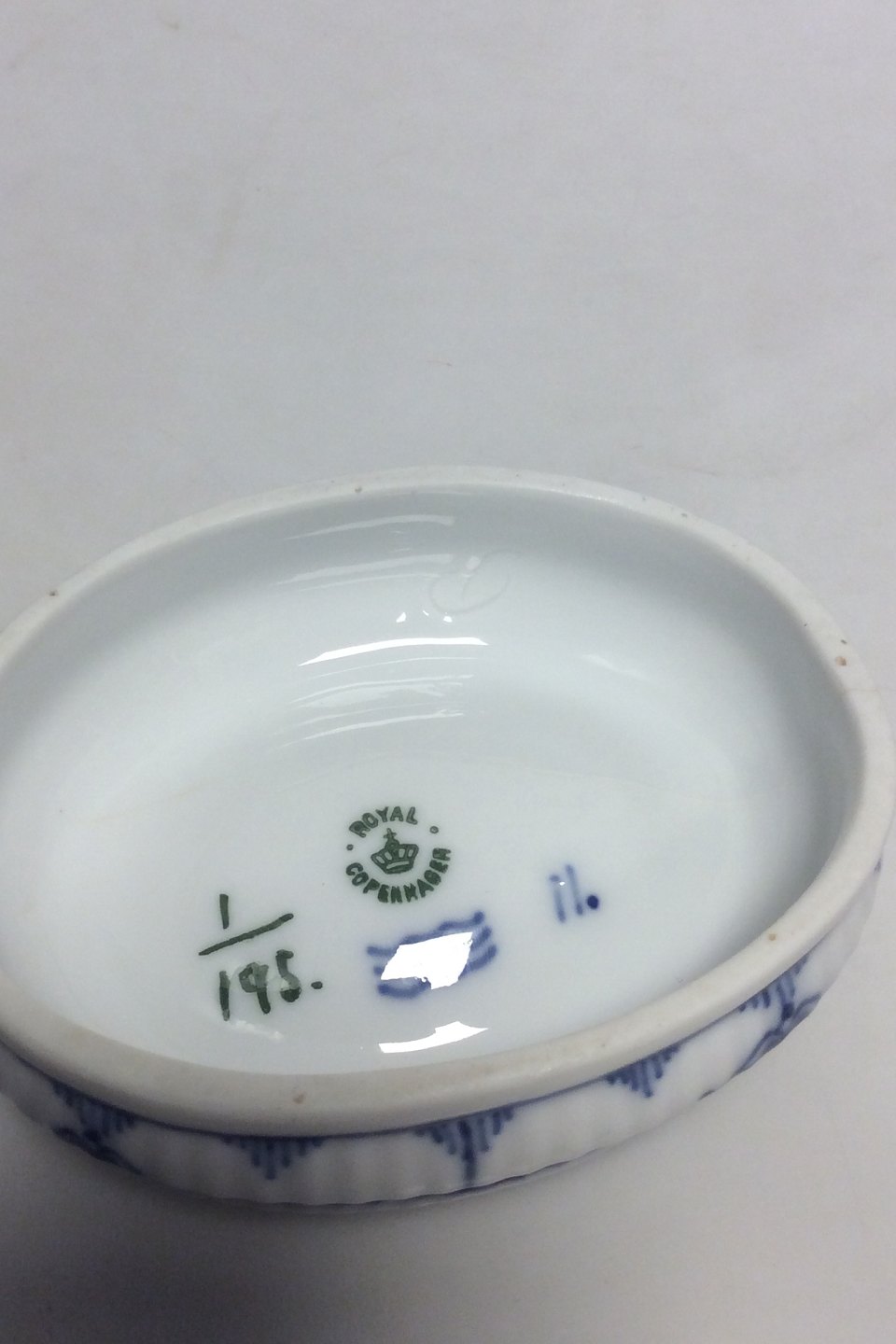 Royal Copenhagen Musselmalet Riflet Saltkar No 195. 8 x 7 cm. Kan anvendes som smør og kaviarskål. 1. Sortering