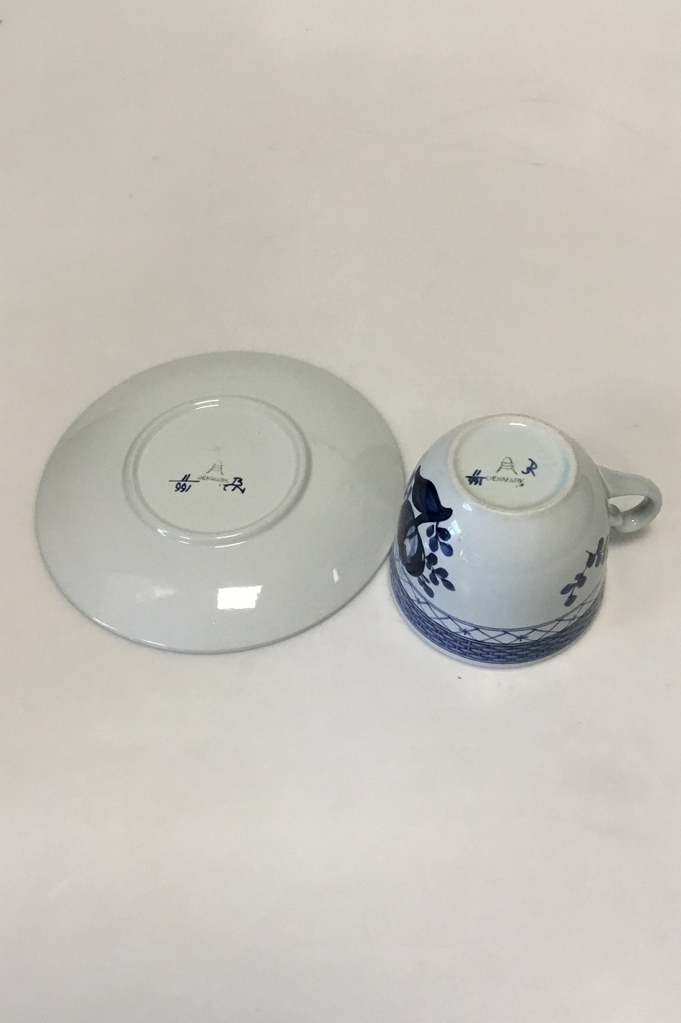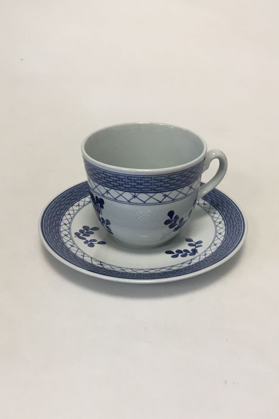 Royal Copenhagen Blue Tranquebar Large Coffee Cup and Saucer No 991. Measures Cup: 8 cm / 3 5/32 in. x 9.4 cm / 3 45/64 in. dia. Saucer: 17 cm / 6 11/16 in.