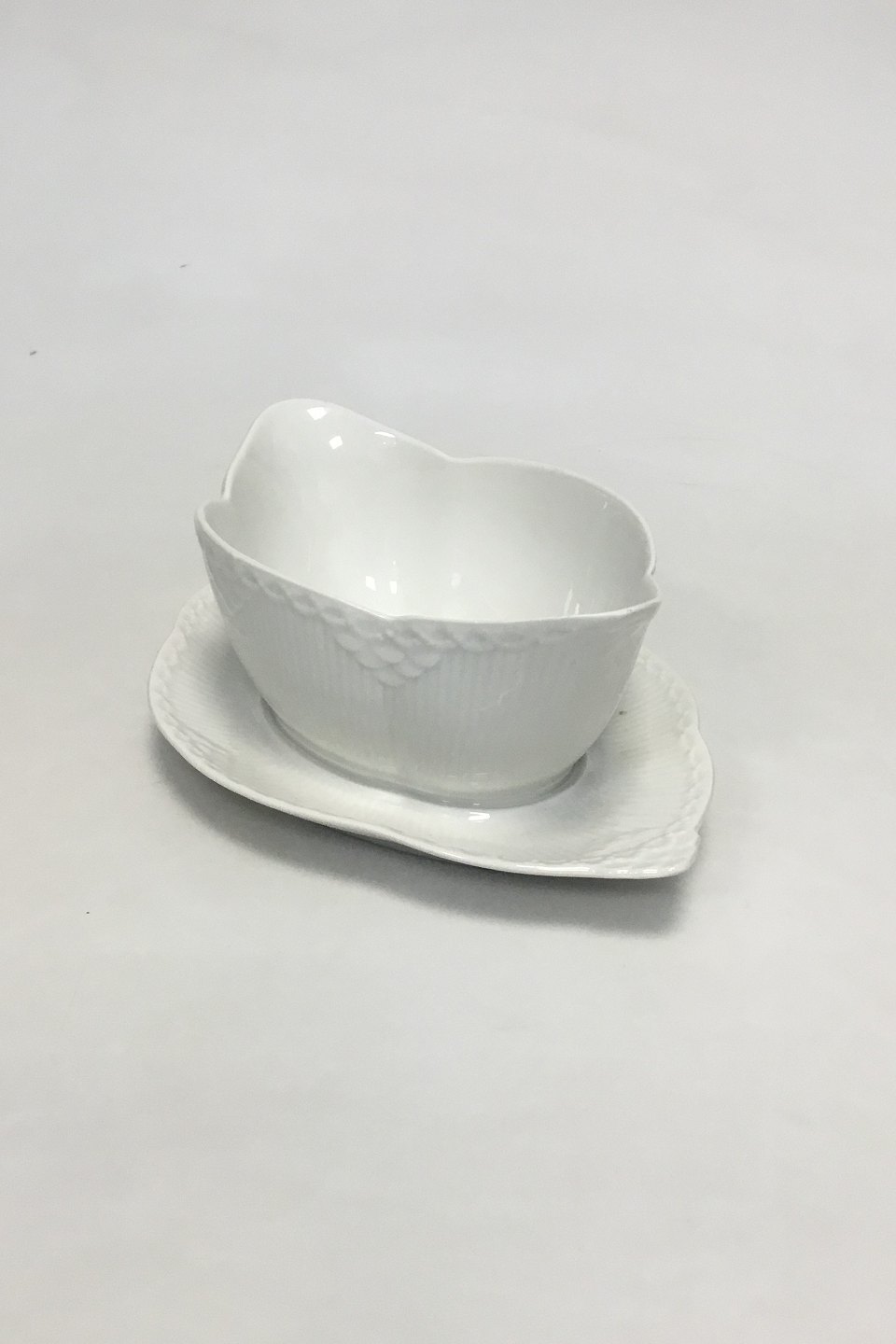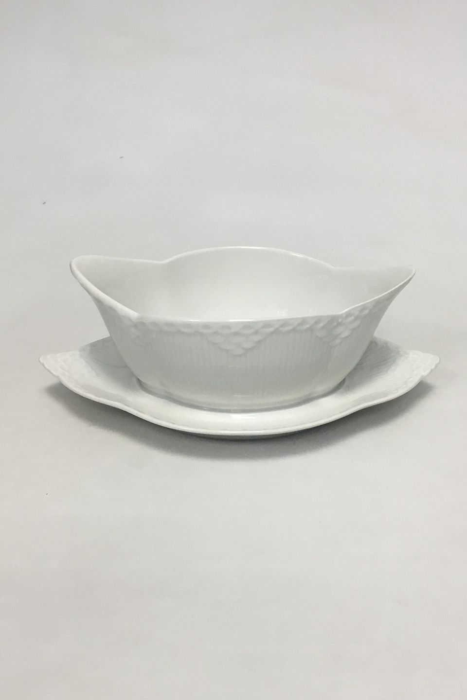 Royal Copenhagen White Half Lace Sauce Boat. Measures 24 cm / 9 29/64 in.