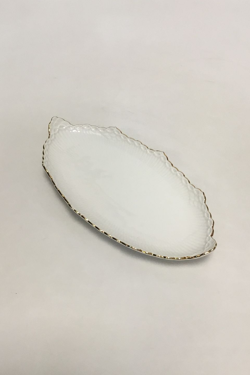 Royal Copenhagen Tradition White Half Lace w. Gold Cake dish No 613. Measures 24.5 cm / 9 41/64 in. x 12.5 cm / 4 59/64 in.