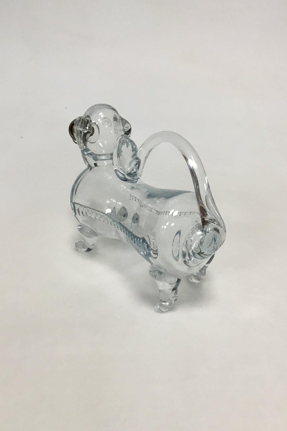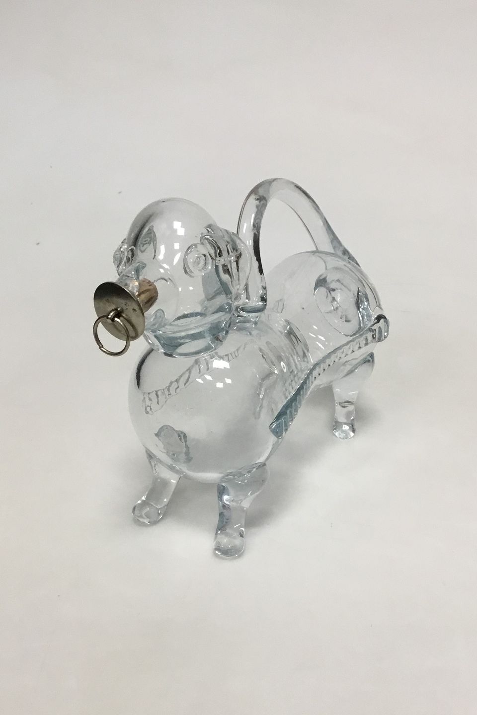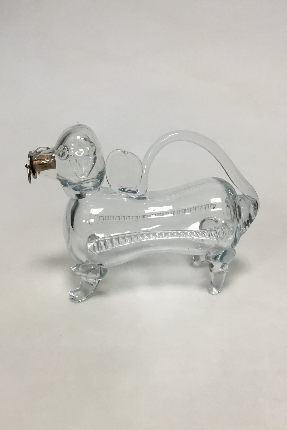 Antageligt Holmegaard Snapsehund i klart glas. Måler 21 cm. Vipper på det ene ben