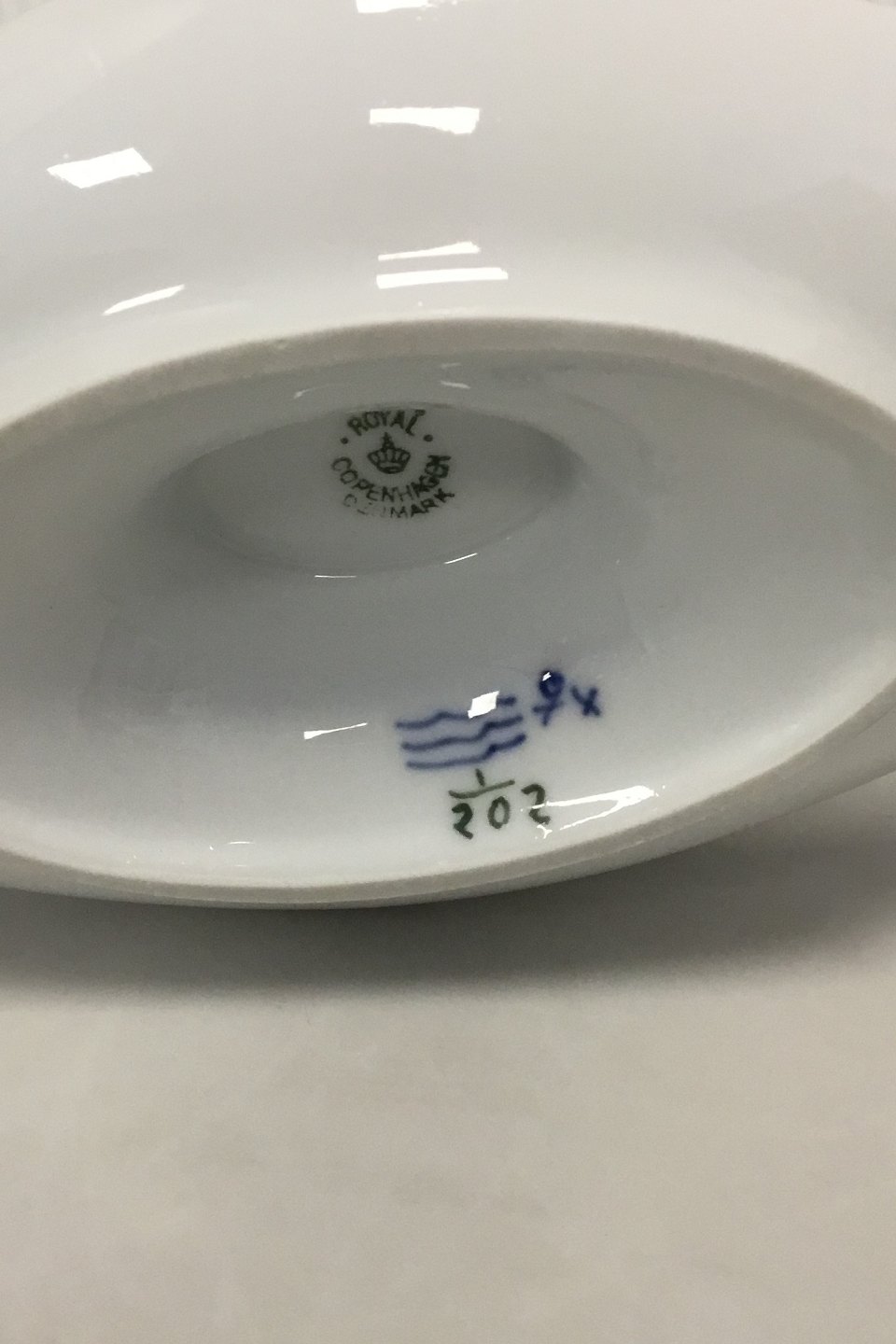 Royal Copenhagen Musselmalet Riflet Sovseskål No 202. Måler 24 cm. Skår på kanten