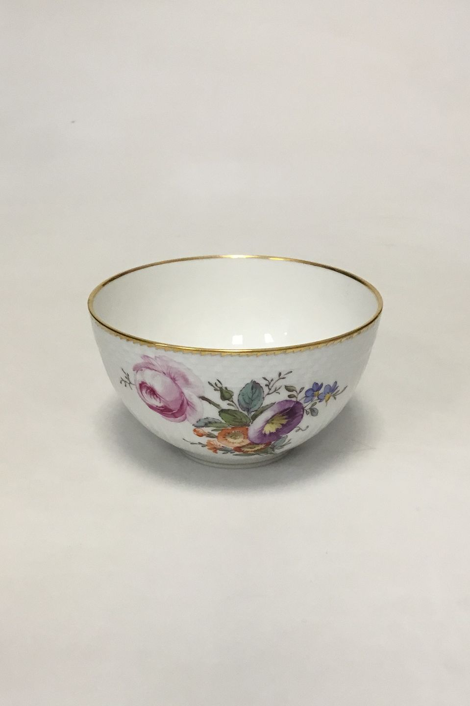 Royal Copenhagen Full Saxon Flower Bowl No 1550A. Measures 6.3 cm / 2 31/64 in. x 10.4 cm / 4 3/32 in.