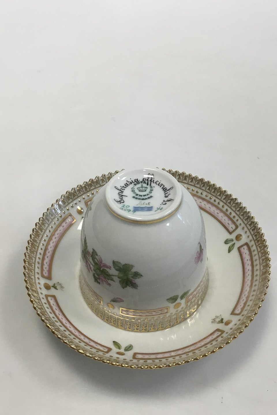 Royal Copenhagen Flora Danica Coffee Cup and Saucer No 20/3597. Latin Name: Euphrasia officinalis L. Measures Cup: 7 cm / 2 3/4 in. x 7.5 cm / 2 61/64 in. dia. Saucer: 13.8 cm / 5 7/16 in.