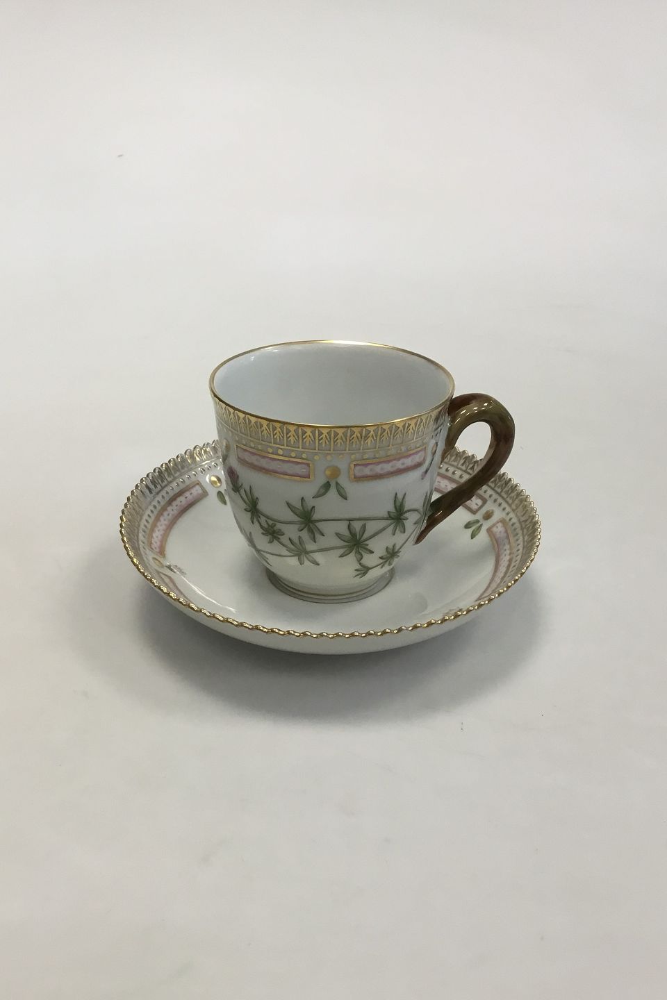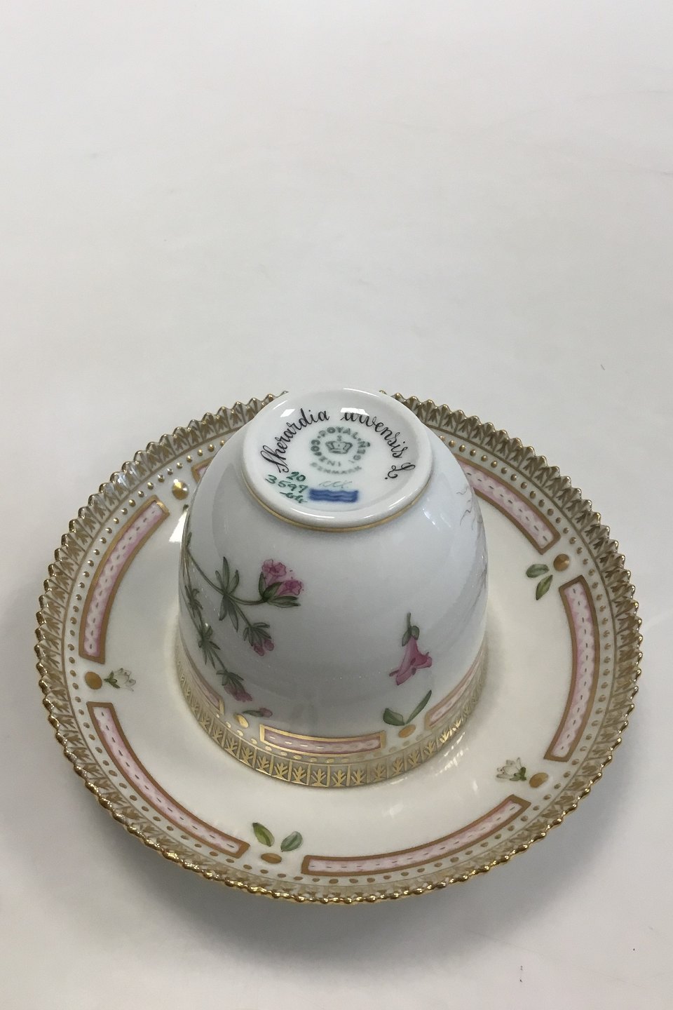 Royal Copenhagen Flora Danica Kaffekop og Underkop No 20/3597. Latinsk Navn: Sherardia Avensis L. Måler Kop: 7 cm x 7,5 cm dia. Underkop: 13,8 cm