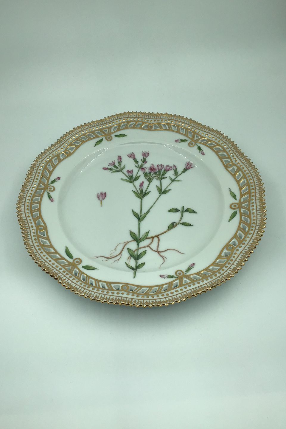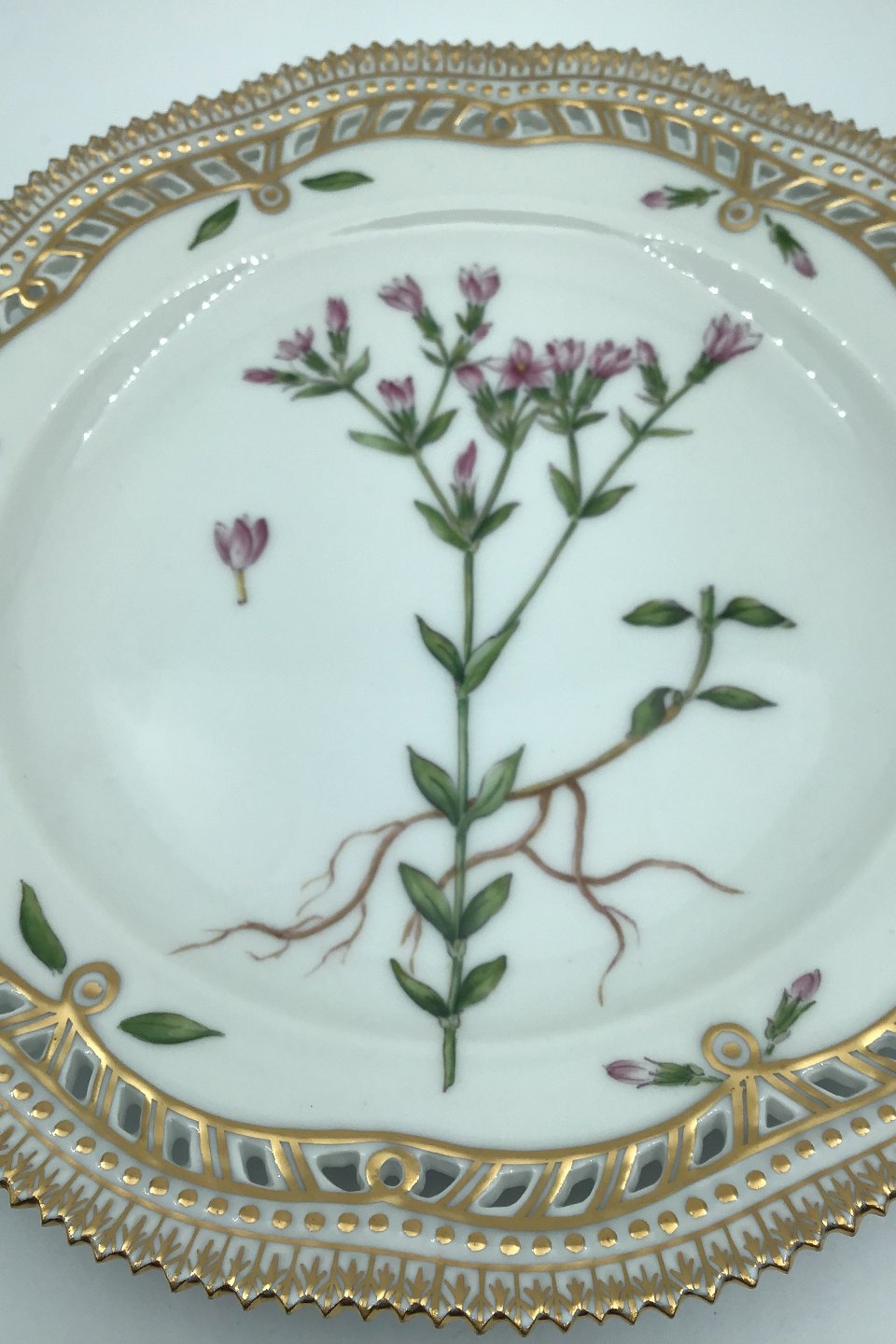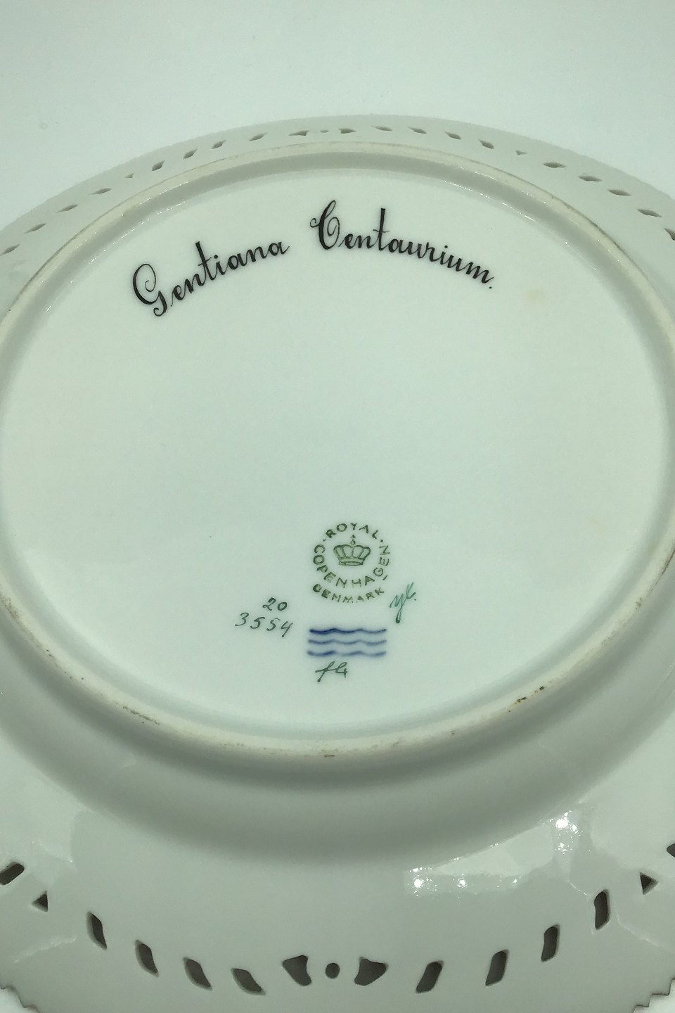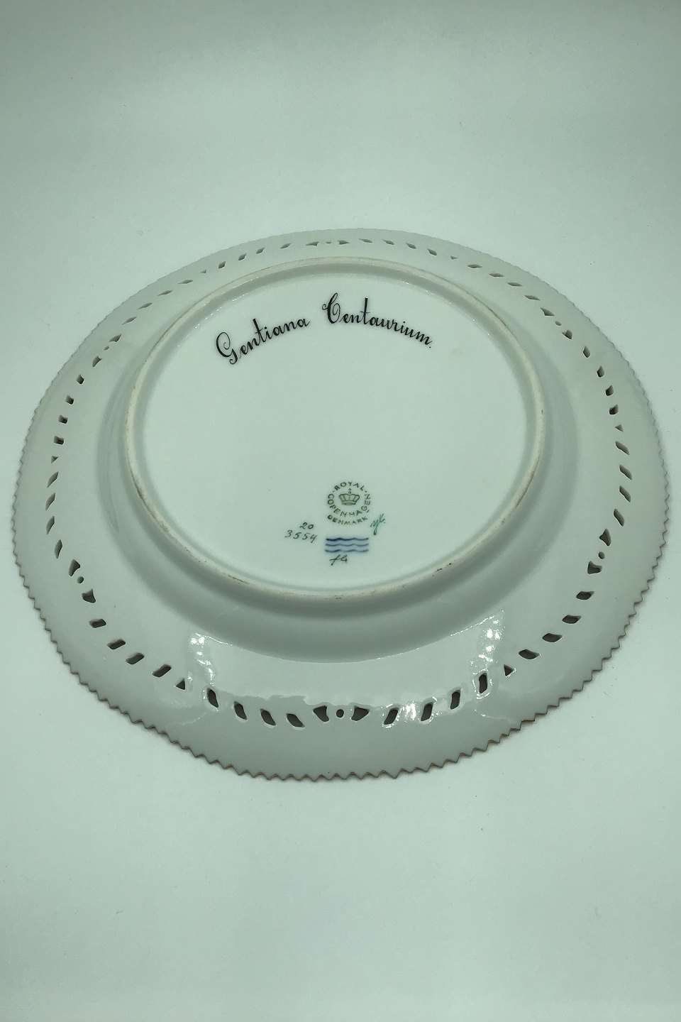 Royal Copenhagen Flora Danica Frokosttallerken No 20/3554 med gennembrudt kant. Latinsk Navn: Gentiana Centaurium. Måler 23 cm.(9.05 inch) 1. Sort.