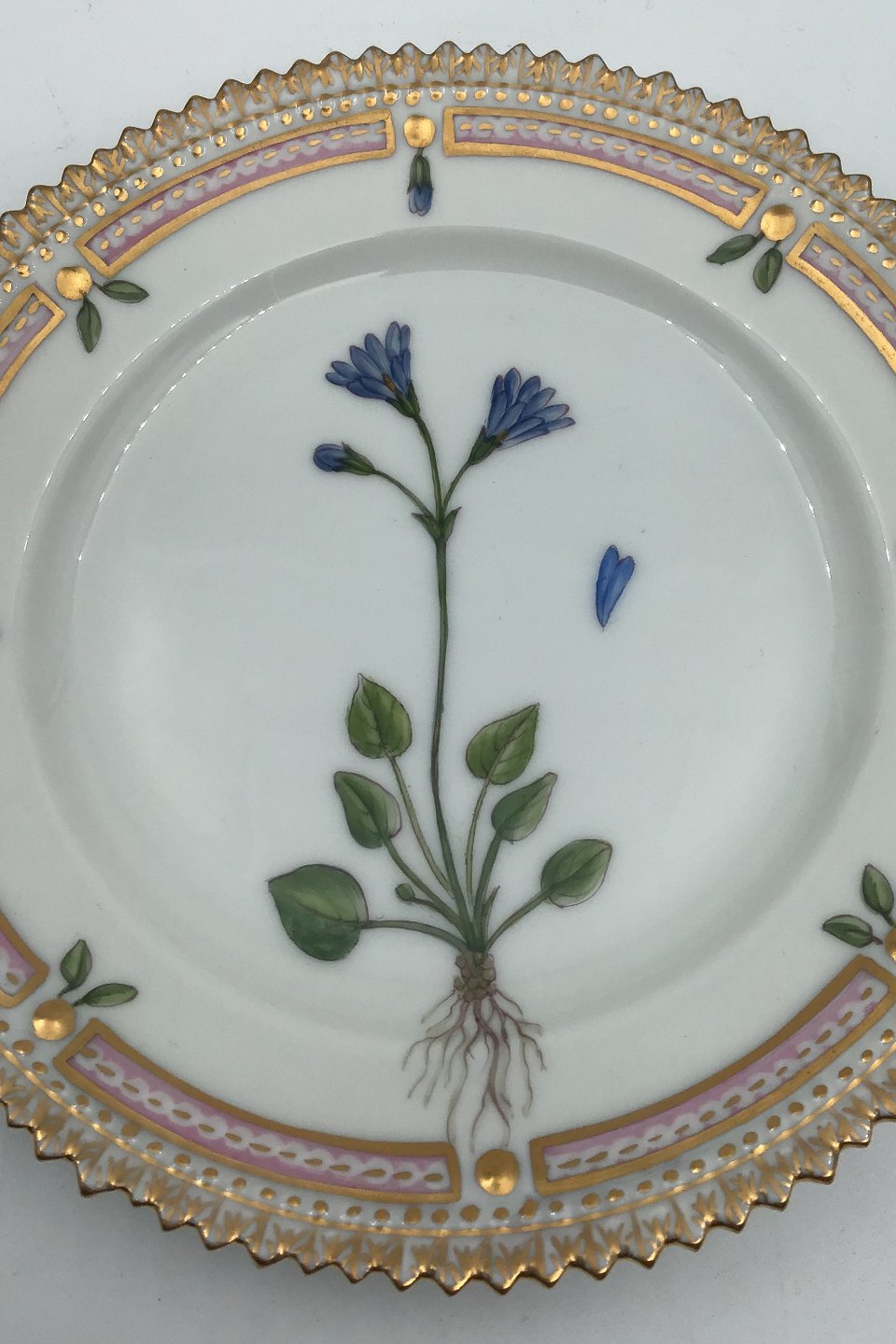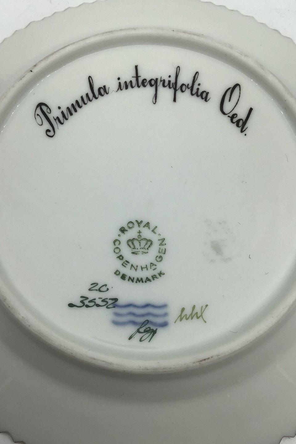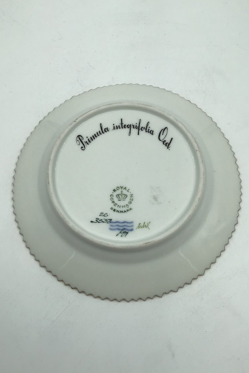 Royal Copenhagen Flora Danica Kagetallerken No 20/3552. Latinsk Navn: Primula integrifolia Oed. Måler Diam 14.3 cm.(5.62 inch)
