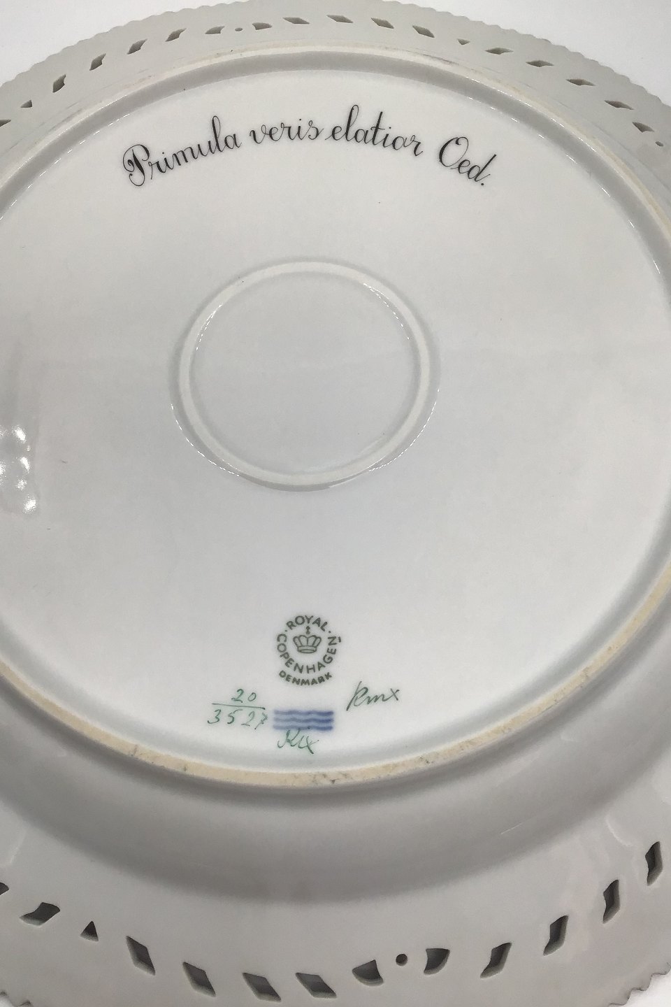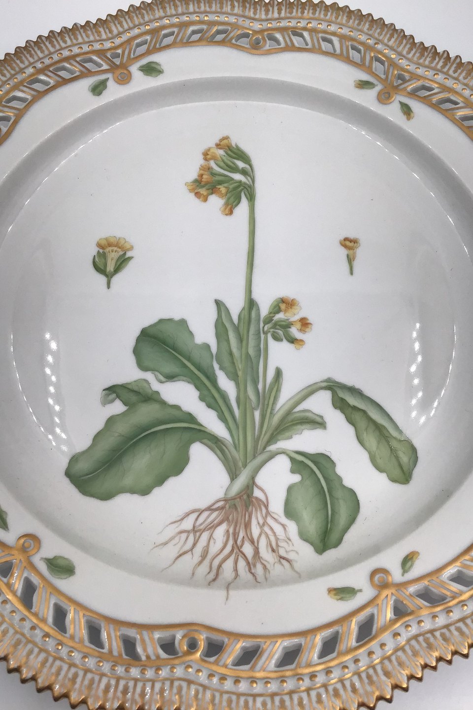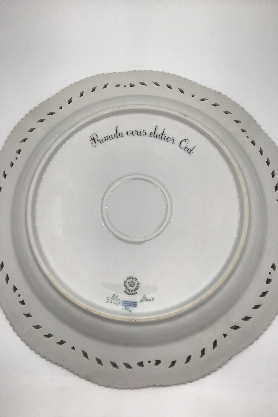 Royal Copenhagen Flora Danica Gennembrudt Serveringsfad No 20/3527 Latinsk Navn: Primula veris elatior Oed Måler 30 cm (11.81 inch)