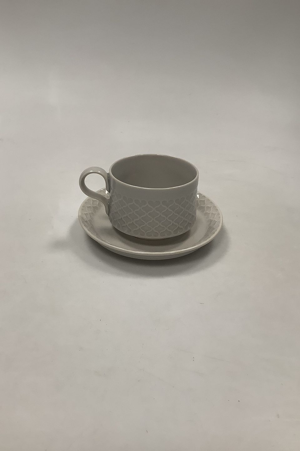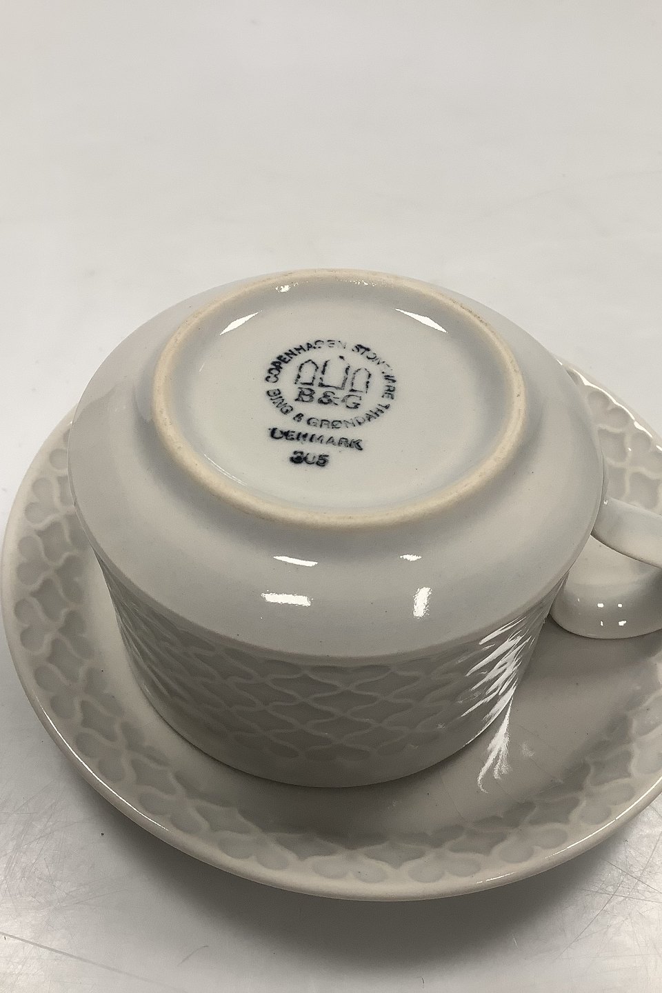 Bing og Grøndahl/Kronjyden Stentøj Hvid Cordial Kaffekop og Underkop No 305. Kop måler 6 x 8 cm (2 23/64 x 3 5/32 in).