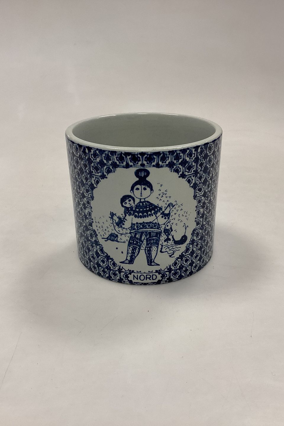 Bjørn Wiinblad Nymølle Urtepotteskjuler - NORD No. 3022-697. Blå dekoration. Måler 9,5 cm x 10,5 cm / 3.75 in. x 4.14 in.