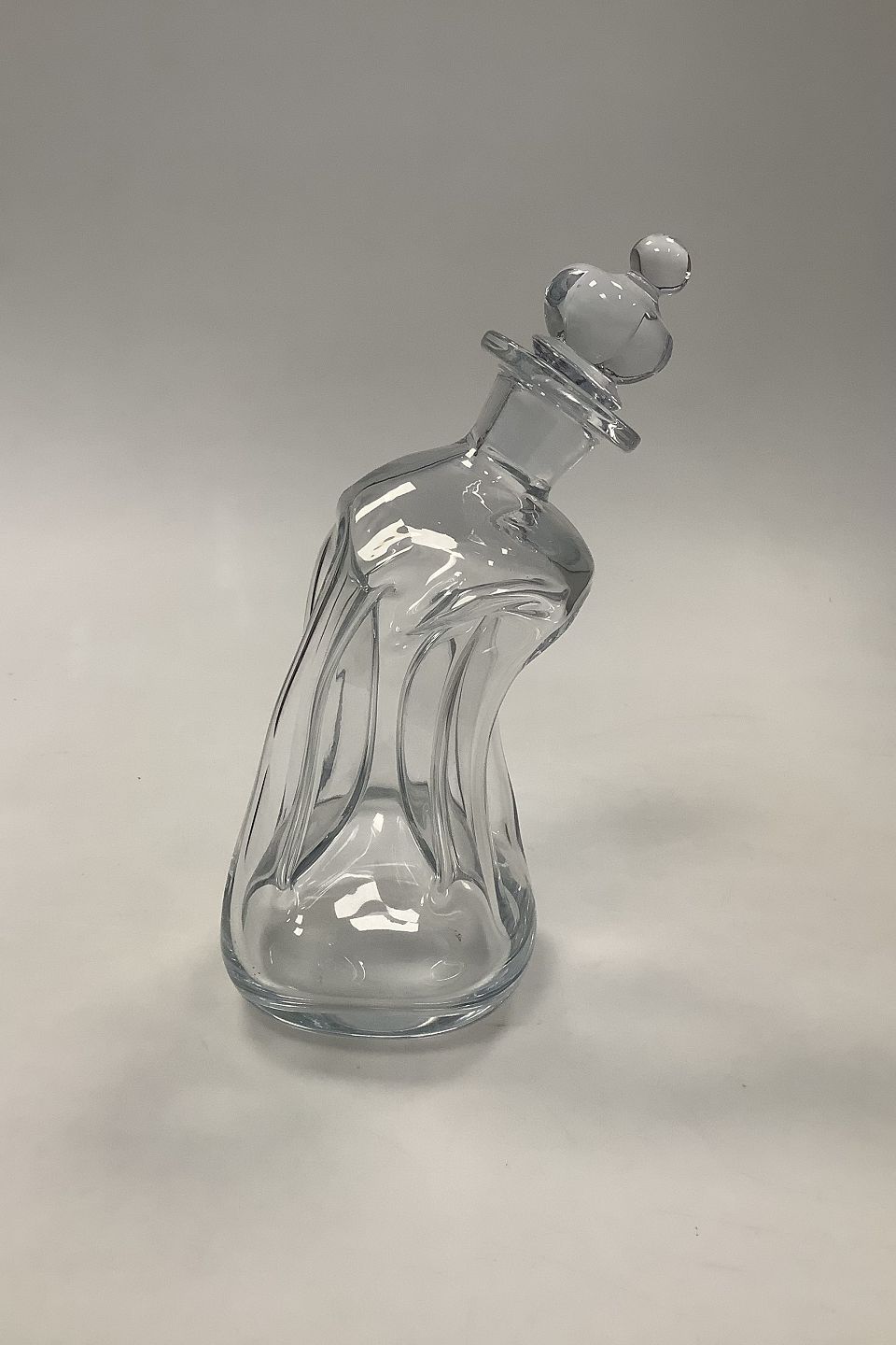Holmegaard / Kastrup Glasværk Kluk Kluk Karaffel i med Klar Kroneformet Prop. Indsugede sider der krummer i den en side.