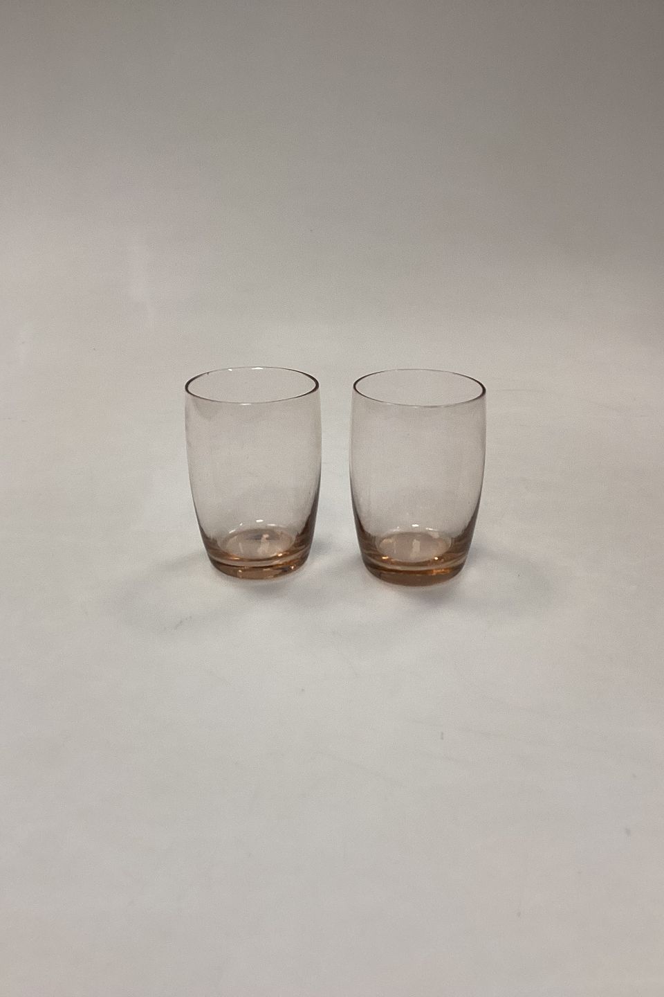 Et par Holmegaard laksefarvede Sodavandglas. Måler 8 cm / 3,14 in. Holmegaard / Kastrup Glasværk