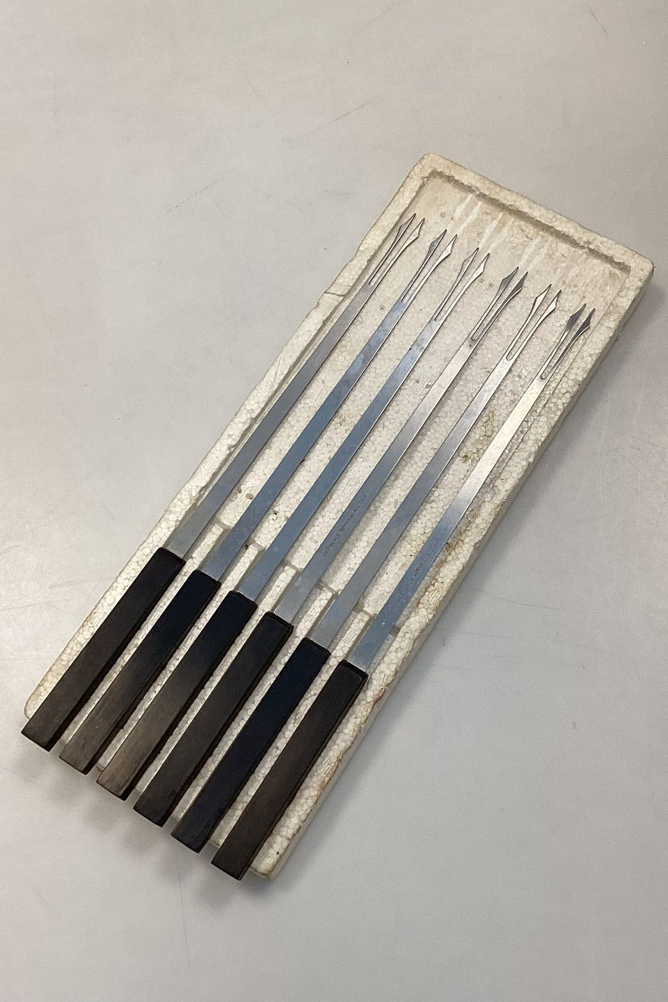 6 gafler med Sort skaft og farvemarkering. Brugt, men i god stand. flamingo bakke medfølger.
