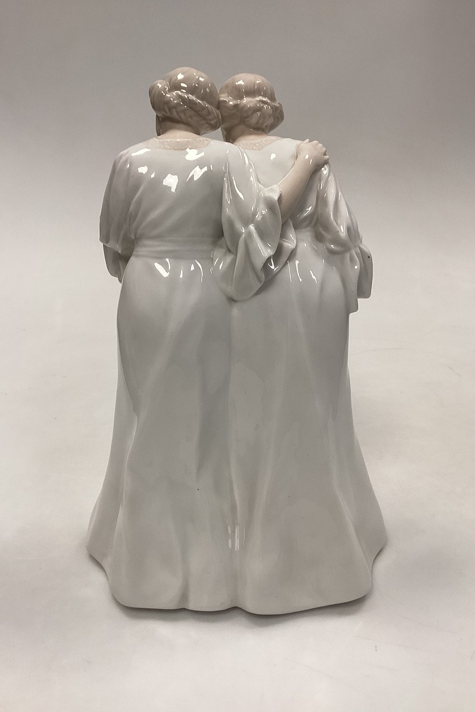 Royal Copenhagen Art Nouveau Figurine - Two Young Women No. 822. From around 1910, and is in very good condition. 2nd Quality with burning defect on sleeve, see photos.