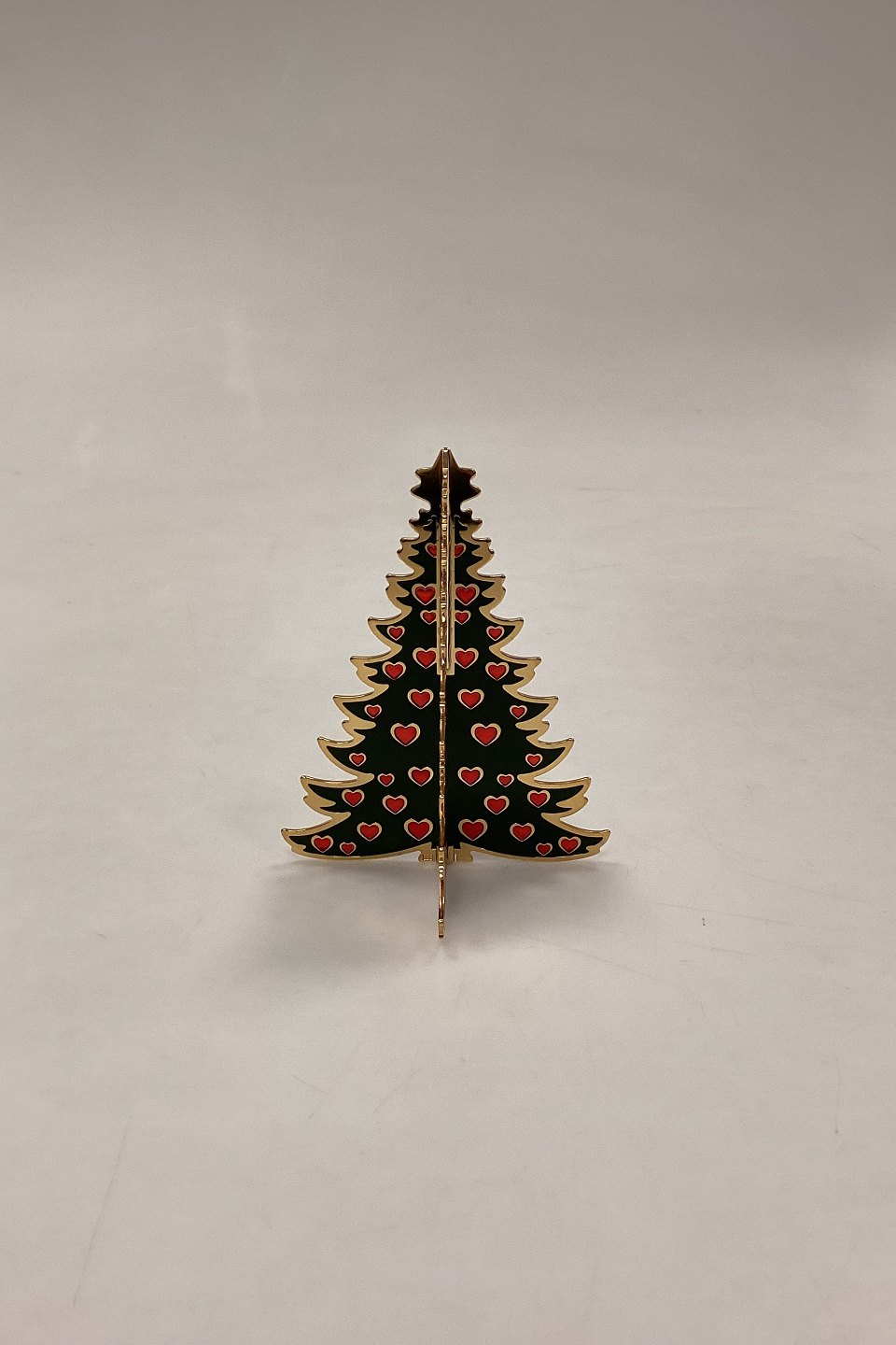 Royal Copenhagen Christmas Lille Juletræ. Bordpynt i messing med grøn emalje og røde hjerter.
