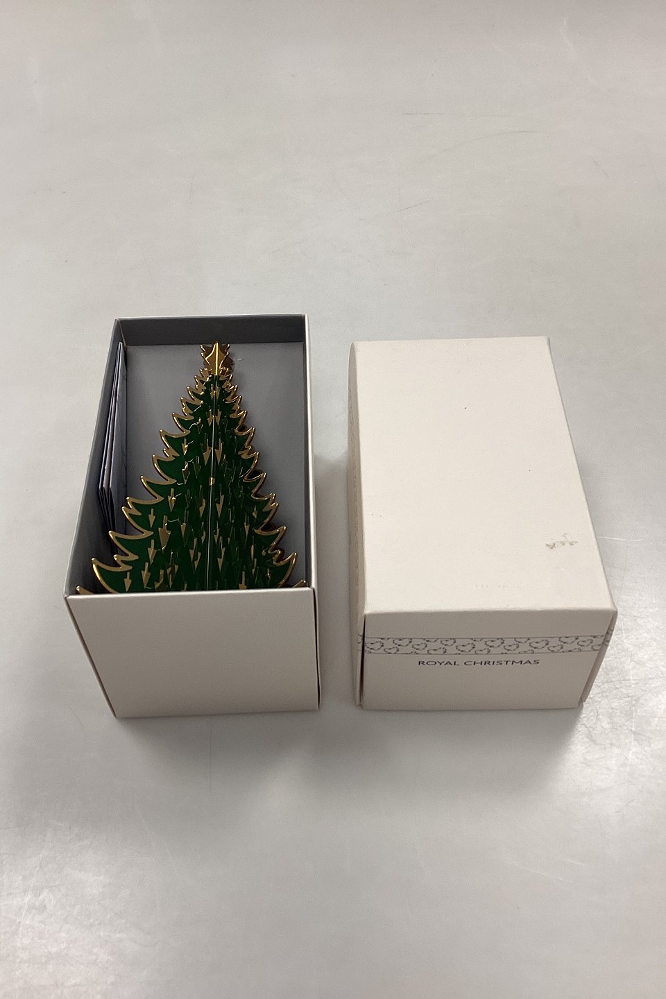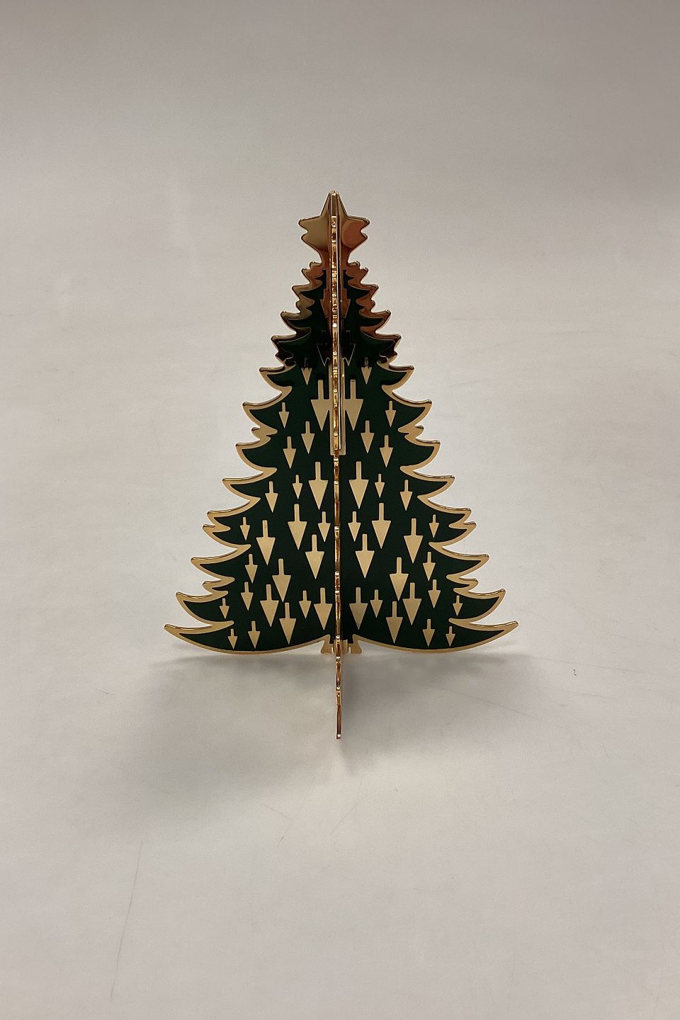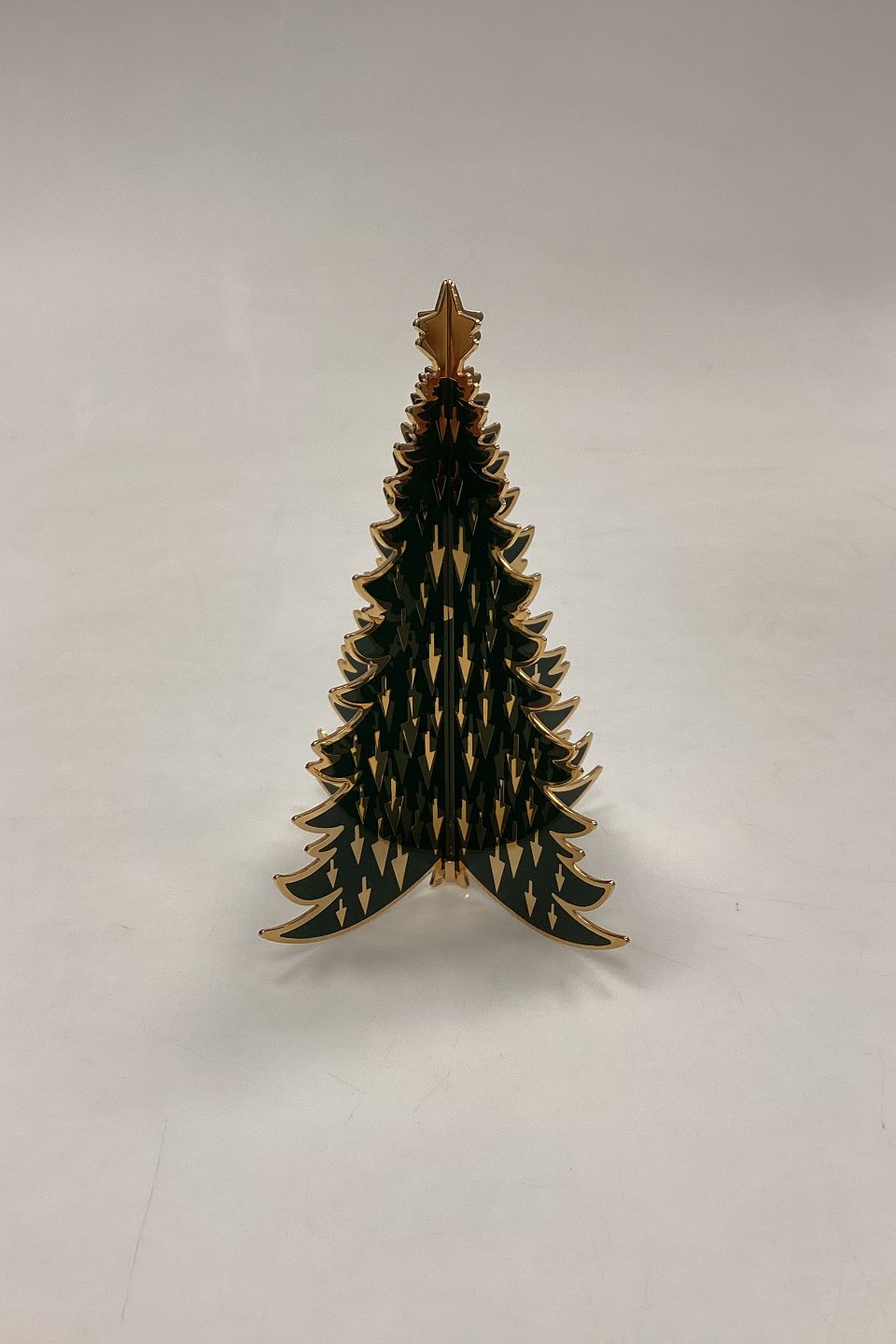 Royal Copenhagen Christmas Mellem Juletræ. Bordpynt i messing med grøn emalje og guld kræmmerhuse.
