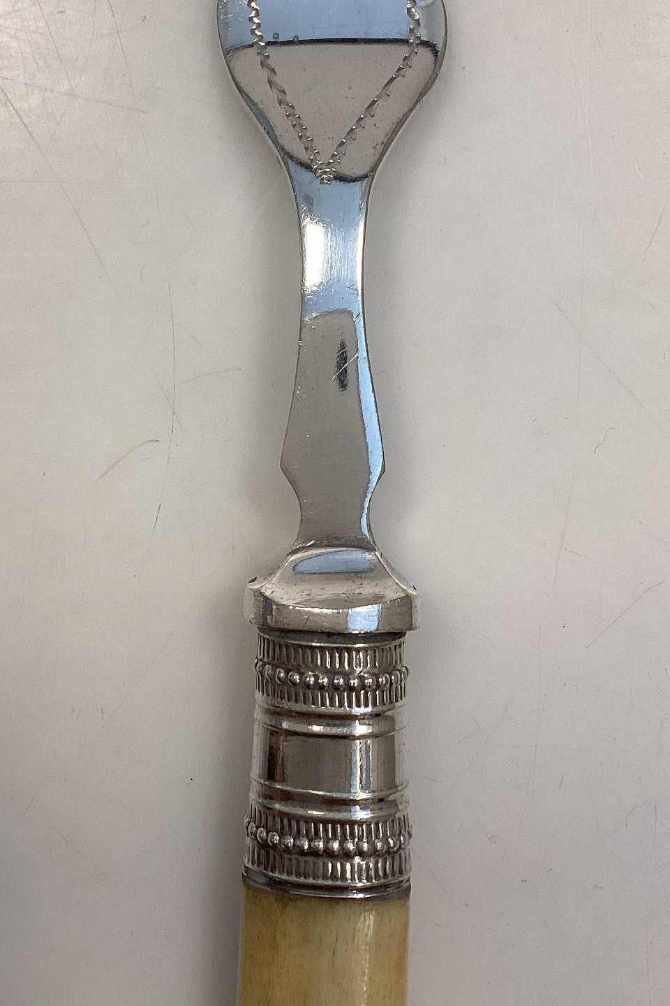 Udenlandsk Frokostgaffel i Sølvplet, med skaft af ben