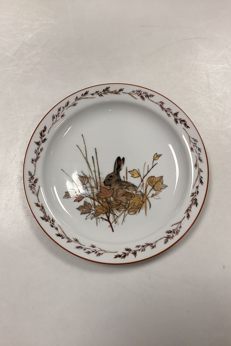 Mads Stage Jagtstellet Frokosttallerken. Producent: Seltmann Weiden. Motiv: Hare.
