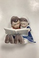 Royal Copenhagen Figur Læsende Børn No. 402. Designet af Ingeborg Plockross Irminger.