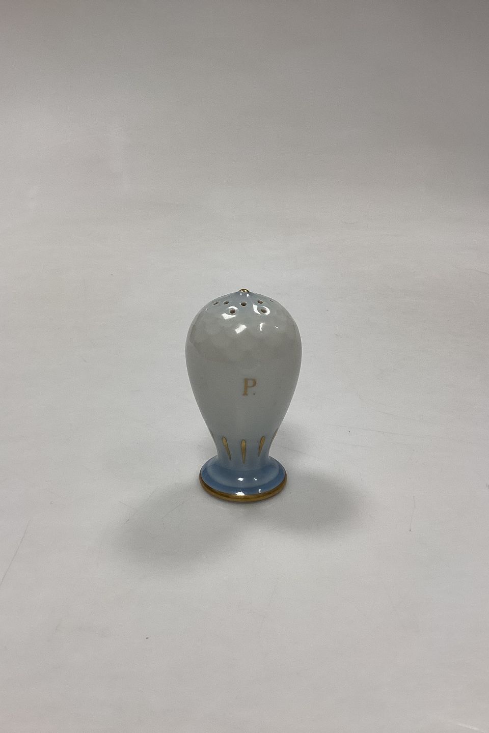 Bing og Grøndahl Måge med guld Peberbøsse No. 52 B. Med bogstav P i stedet for måger. Måler 7 cm / 2,75 in.