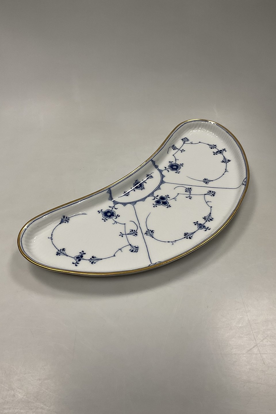 Royal Copenhagen Musselmalet Riflet Halvmåne Fad med Guld No. 402