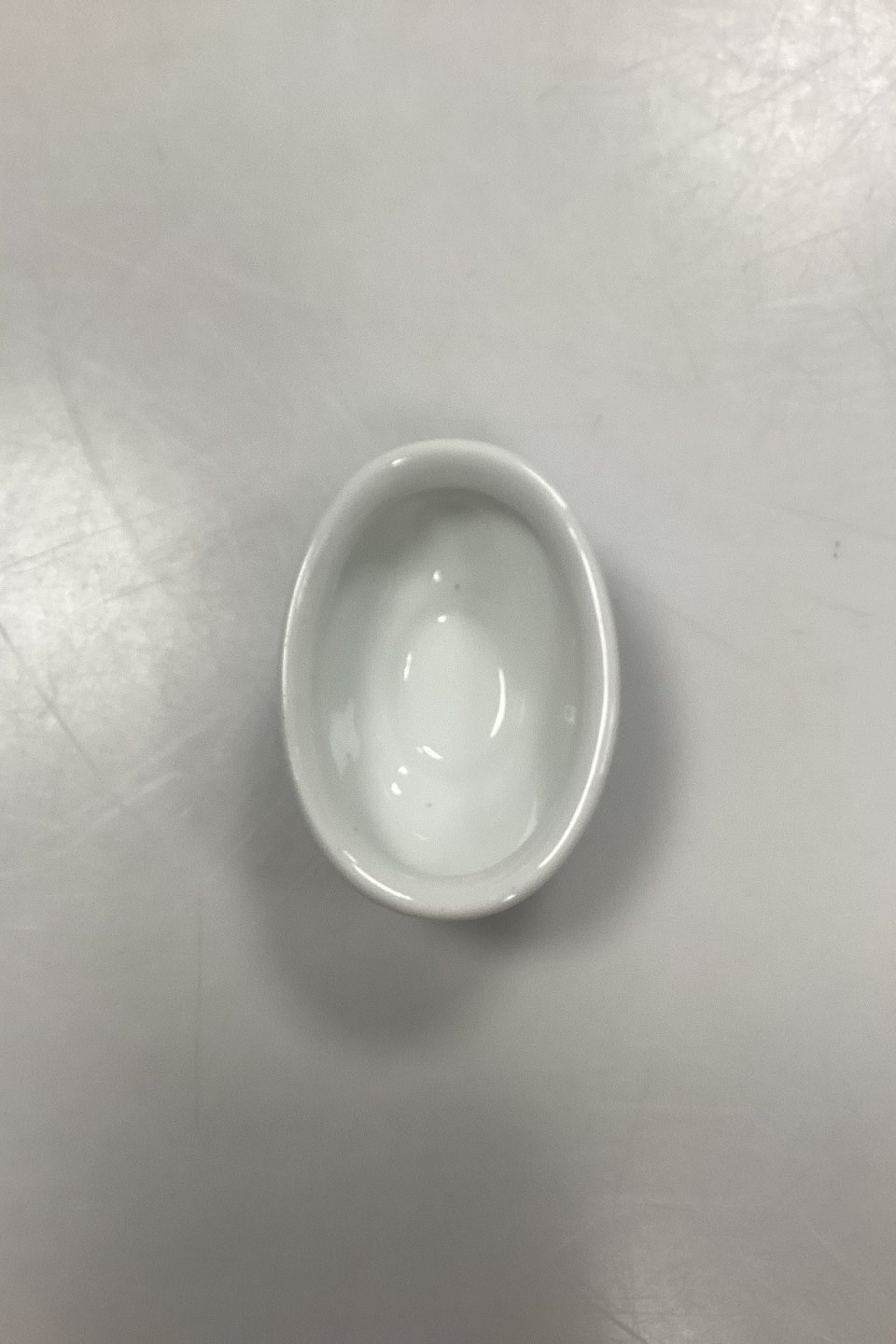 Royal Copenhagen Musselmalet Riflet Ovalt Saltkar No. 196. Foden er lidt nedslebet, og med 2 afslag, se foto. 3. Sortering.