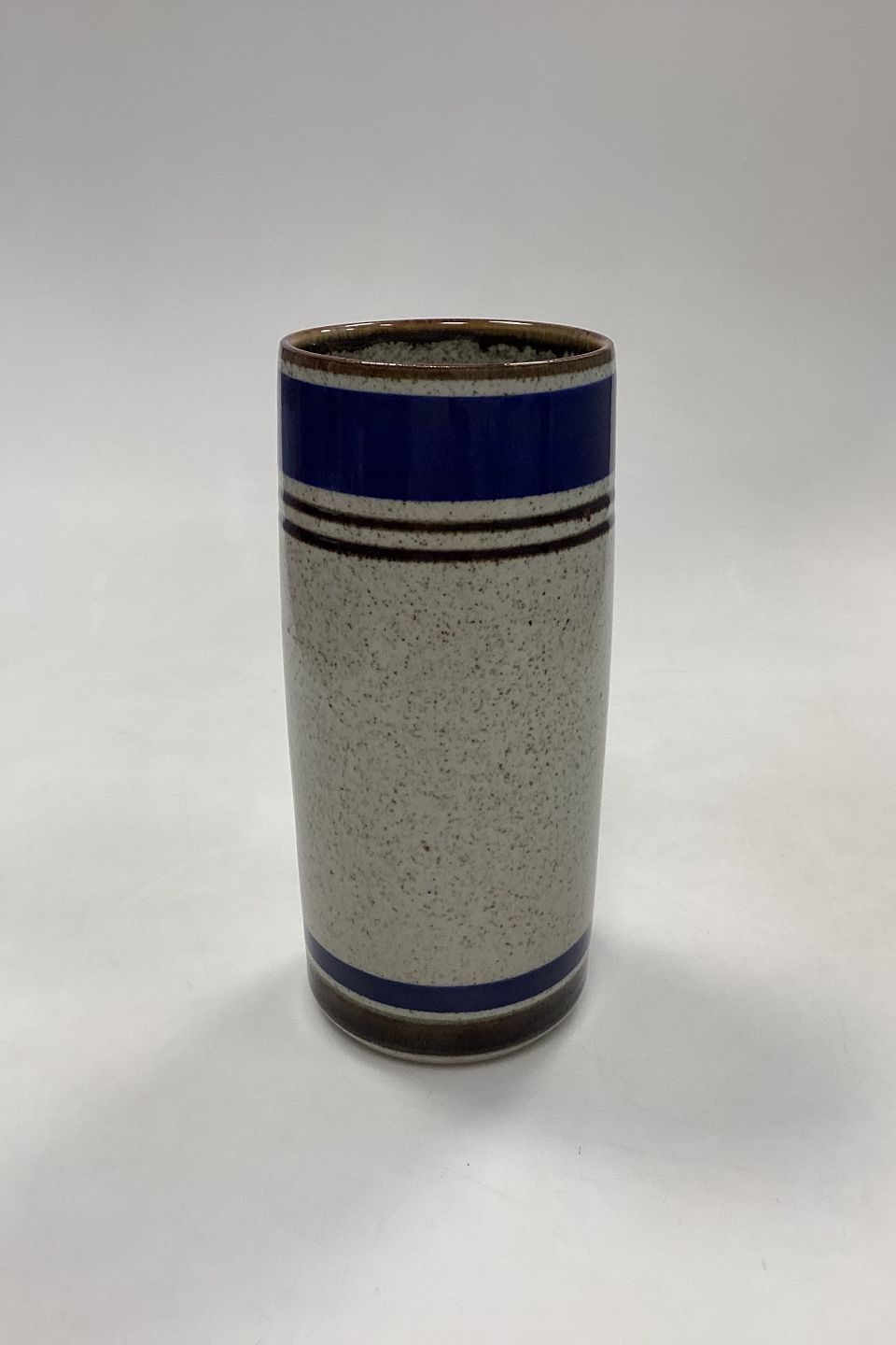Michael Andersen Keramik Stentøjsvase. Beigemeleret med brune og mørkeblå striber.