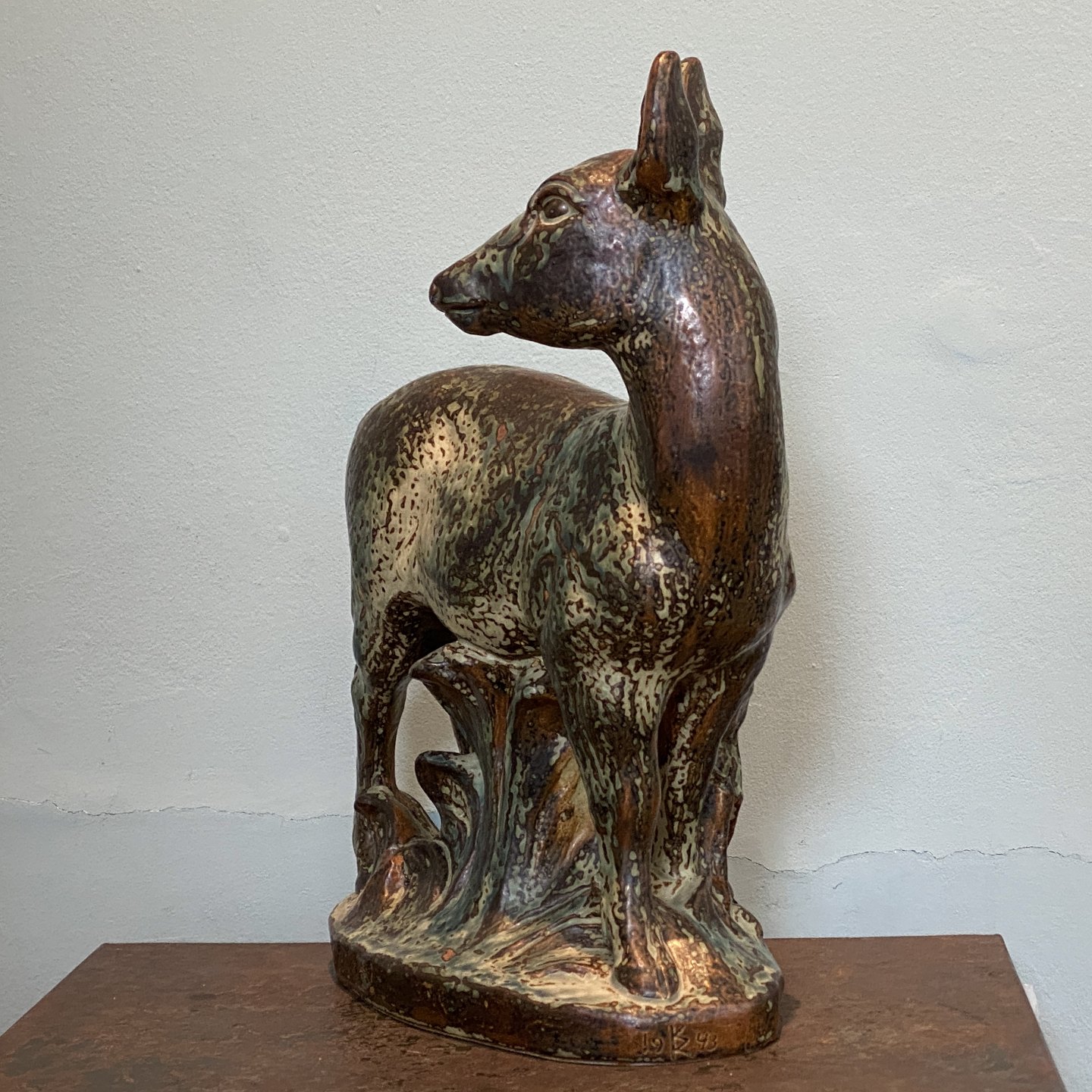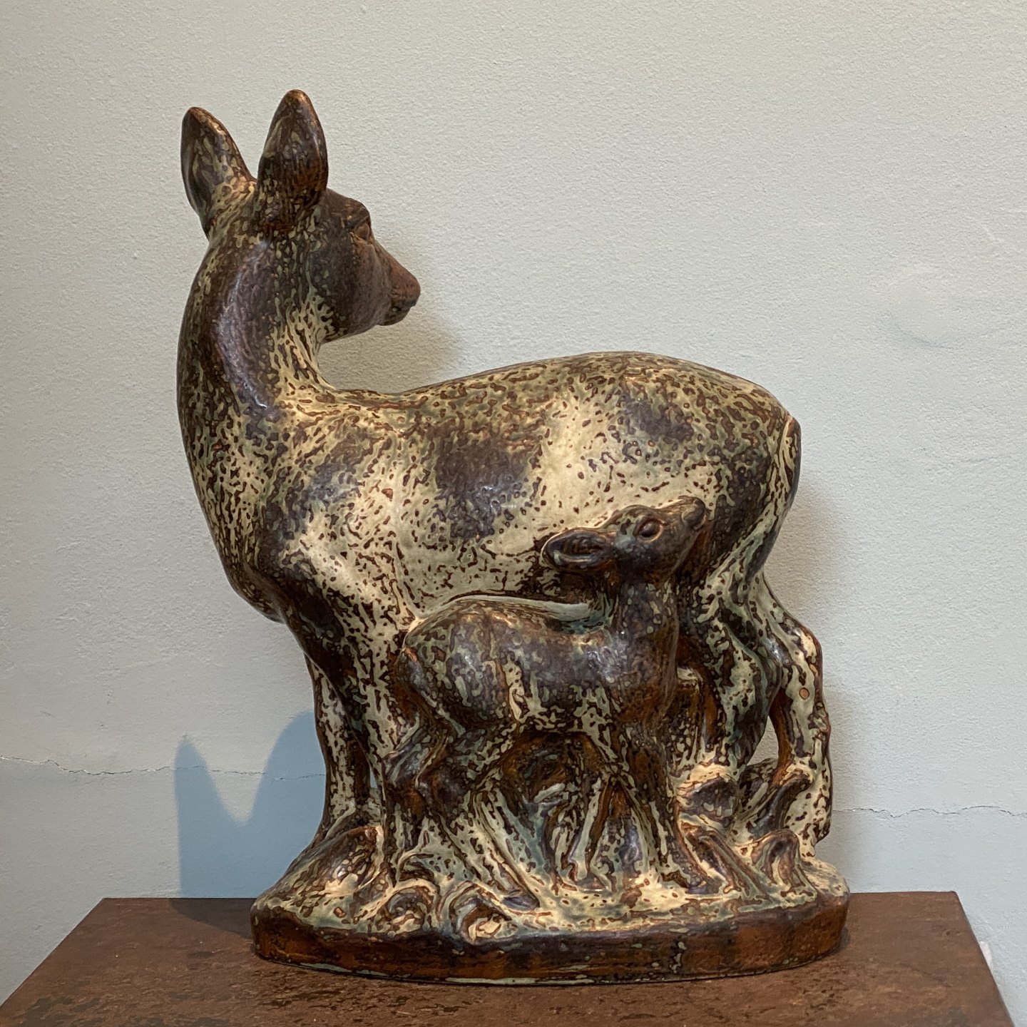 Stentøjsfigur af dådyr med rålam.
