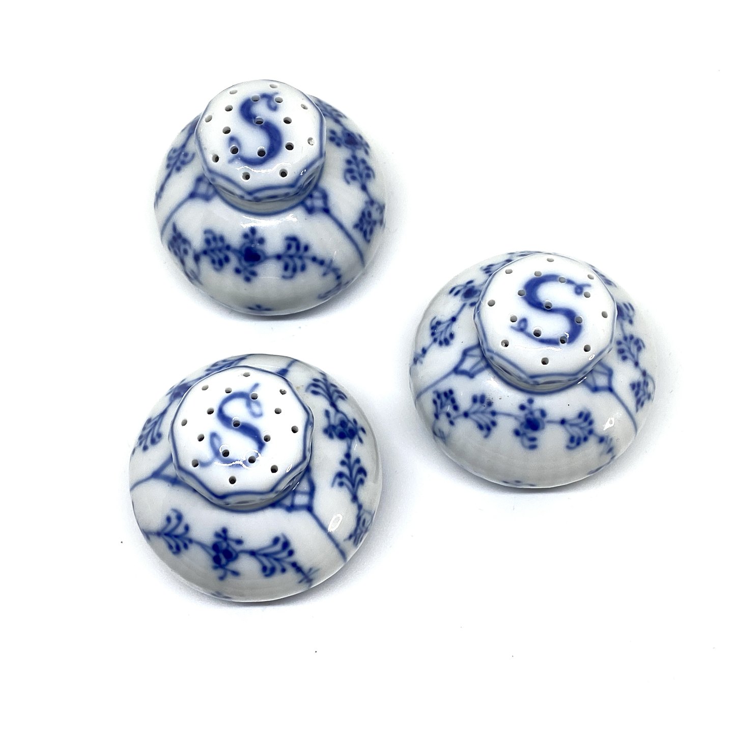 Royal Copenhagen/Kgl Musselmalet halvblonde saltbøsse. Dekorations nummer 541.
