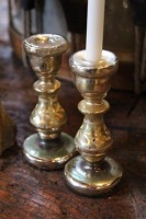 A pair of 19th century candlesticks in poor man's silver (Mercury silver glass)