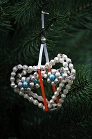 Gammelt juletræspynt i form af små engle glansbilleder og sølvtråd.