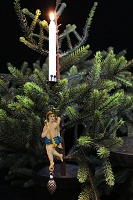 Gammelt juletræspynt , fin dame der holder en lille julemand ,