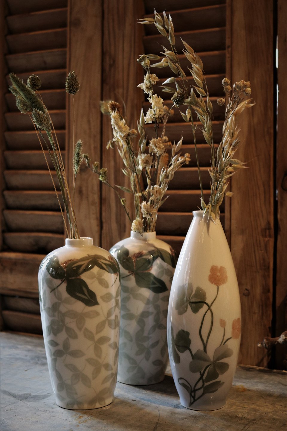 A pair of rare Royal Copenhagen Art Nouveau vases. H:18,5 cm. Decoration number: 156/100. 1.sort. From before 1923.